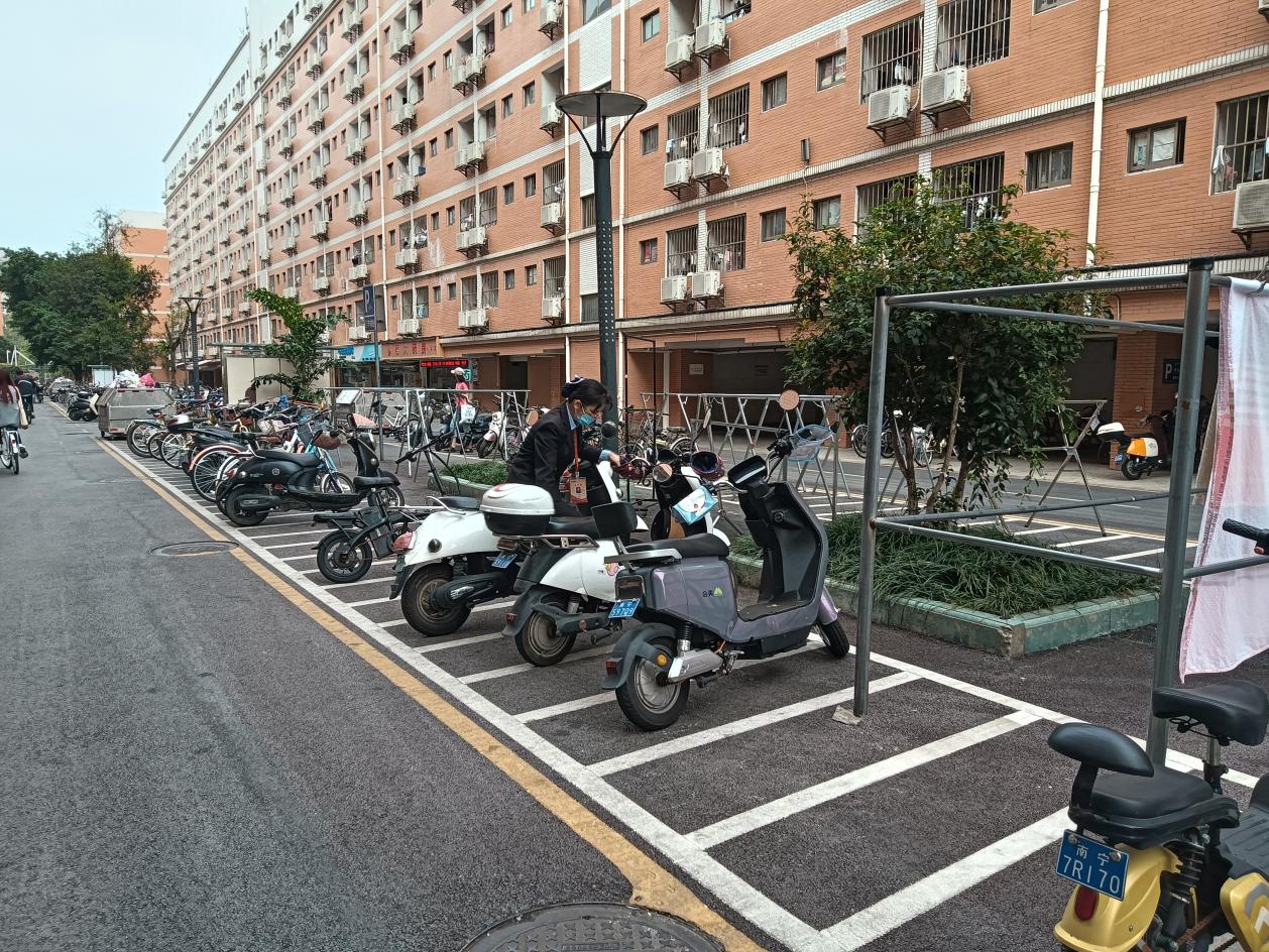 工作人员摆放园区车辆