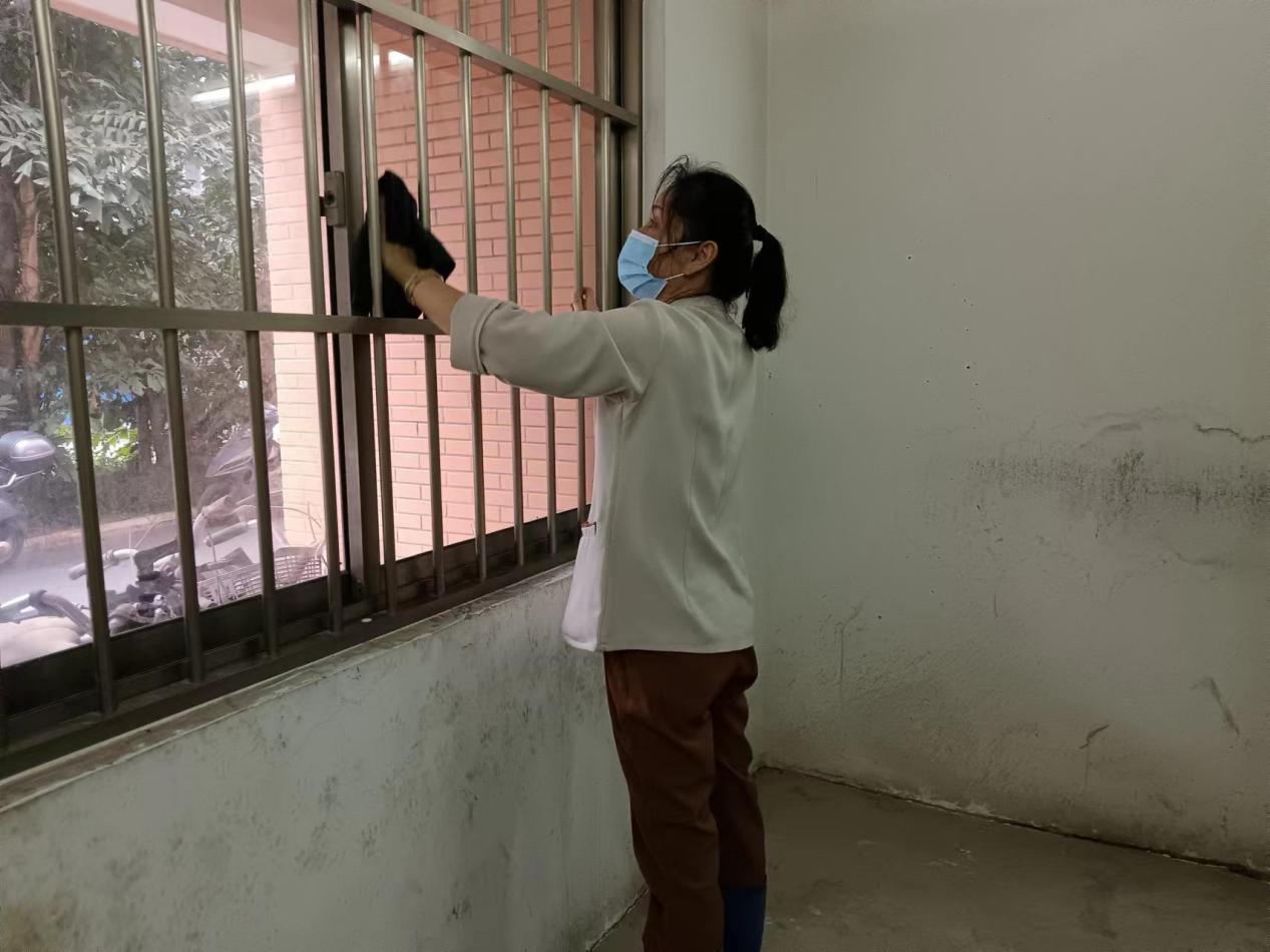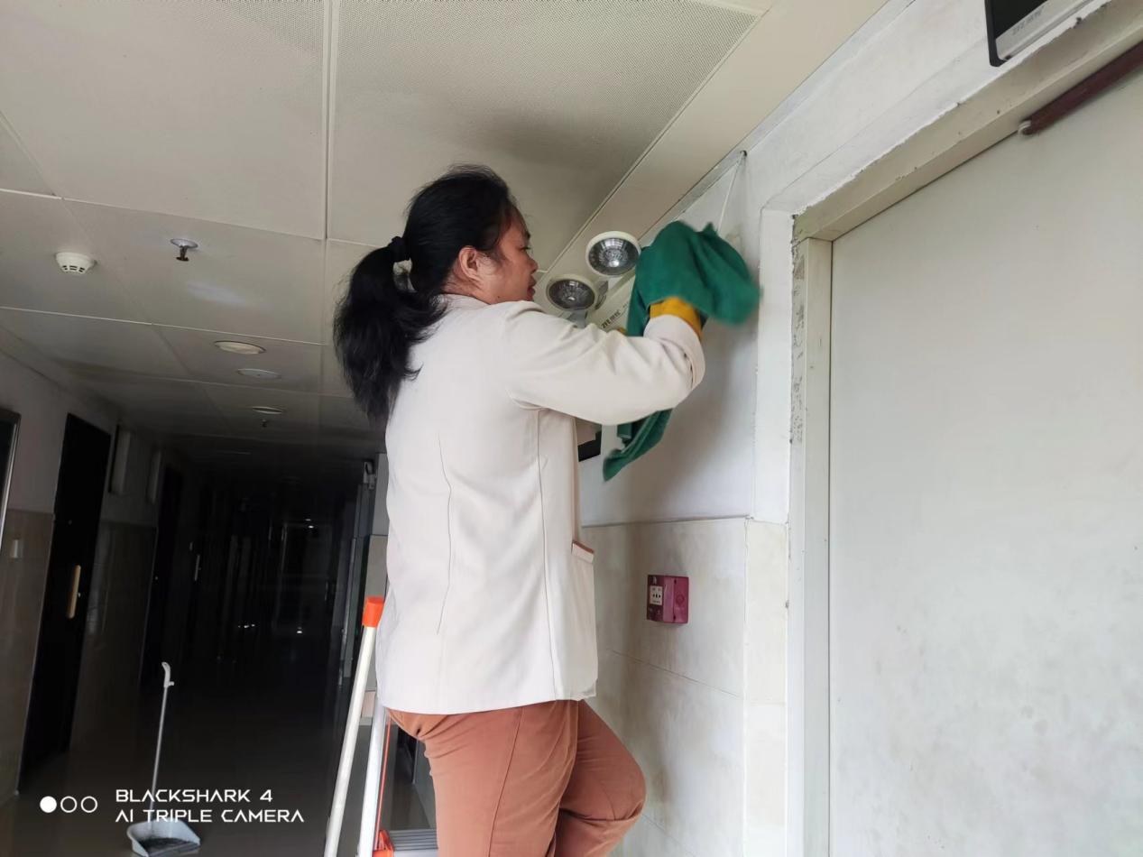 认真做好园区内各种设备设施和33间自习室的保洁维护工作。每日检测园区热水机组温度以及洗衣机的运营情况,定时检查园区消防设备设施情况。擦拭学生公寓园区内472个生活设施(其中公共长椅102张,乒乓球桌152张,晾衣架134个、健身器材84个)。