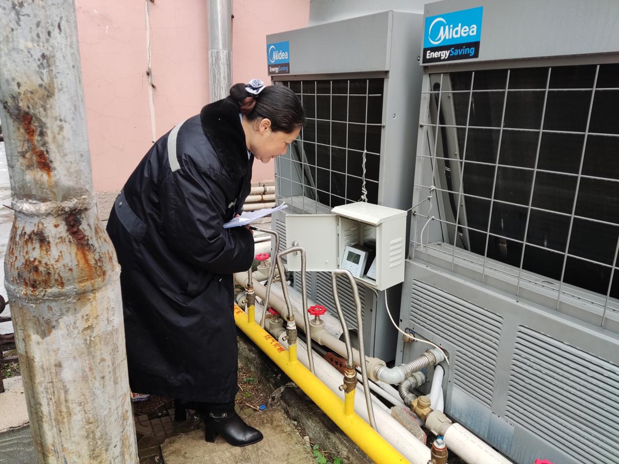 学生工作部、校学生会权益部、太阳集团tyc138、学生公寓物业以及热水公司在西21-23栋园区开展学生公寓热水计量核验工作