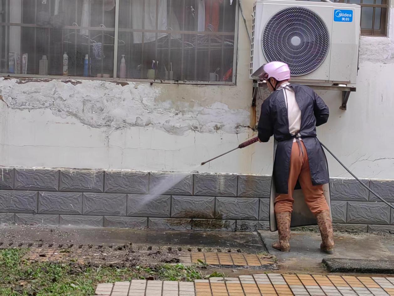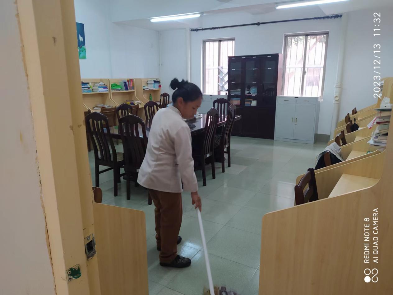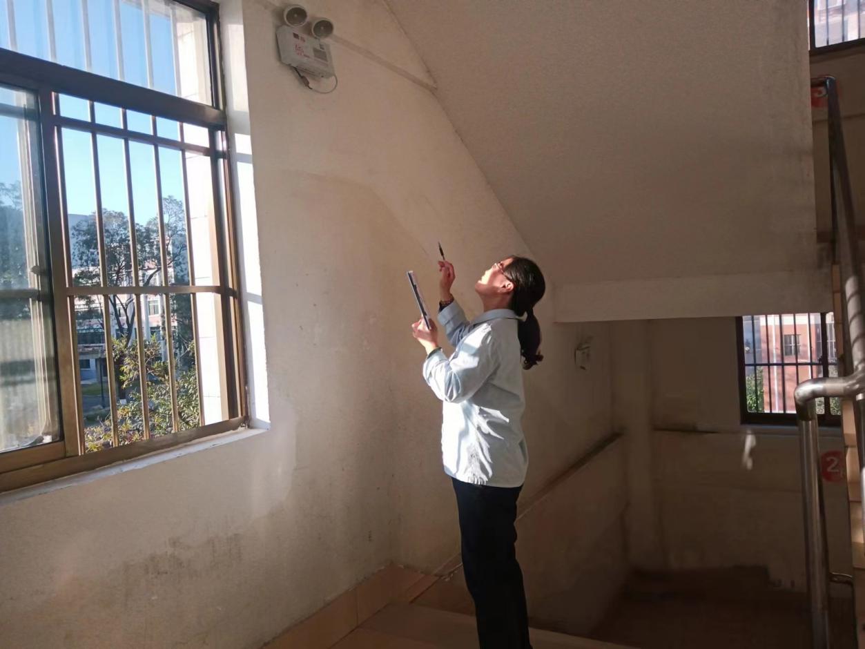 认真做好园区内各种设备设施和33间自习室的保洁维护工作。每日检测园区热水机组温度以及洗衣机的运营情况,定时检查园区消防设备设施情况。擦拭学生公寓园区内472个生活设施(其中公共长椅102张,乒乓球桌152张,晾衣架134个、健身器材84个)。