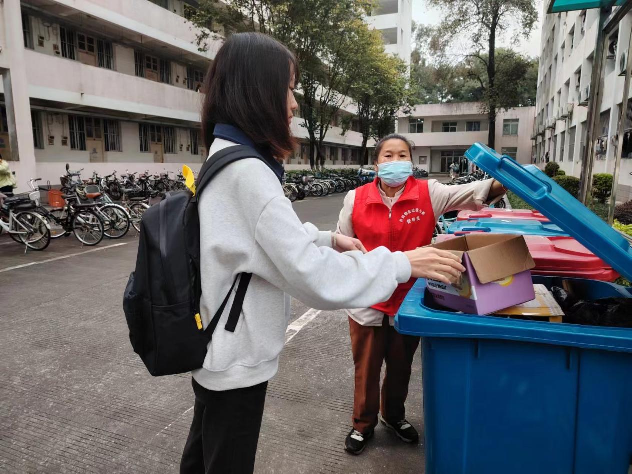 本周垃圾分类督导员共处理垃圾约28.811吨,其中厨余垃圾约12吨、其他垃圾约16吨、可回收垃圾约0.81吨、有害垃圾约 0.001吨;垃圾分类督导员走访学生宿舍并发放垃圾分类宣传单366多张,向428多位同学宣传垃圾分类知识。