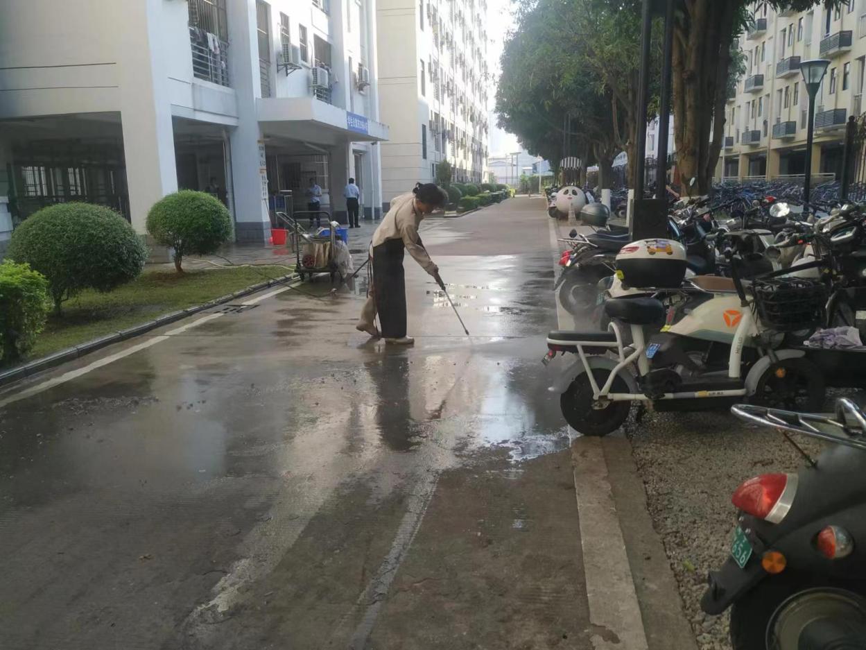 持续做好学生公寓日常保洁和公寓园区绿植养护工作。进行日常保洁约19万平方米,清理明沟水沟长度约3270米;清洗东29-30栋路面;本周绿化重点为东29-30栋绿化消杀,各园区高大树木枯枝修剪工作。