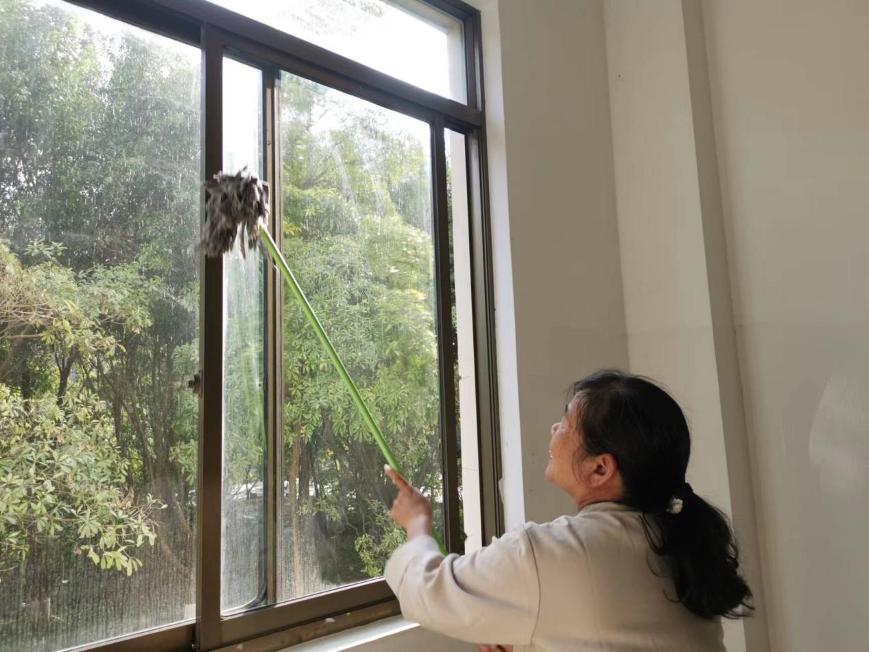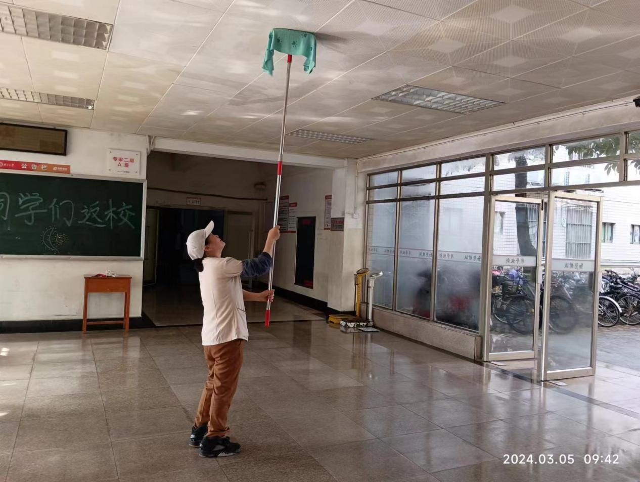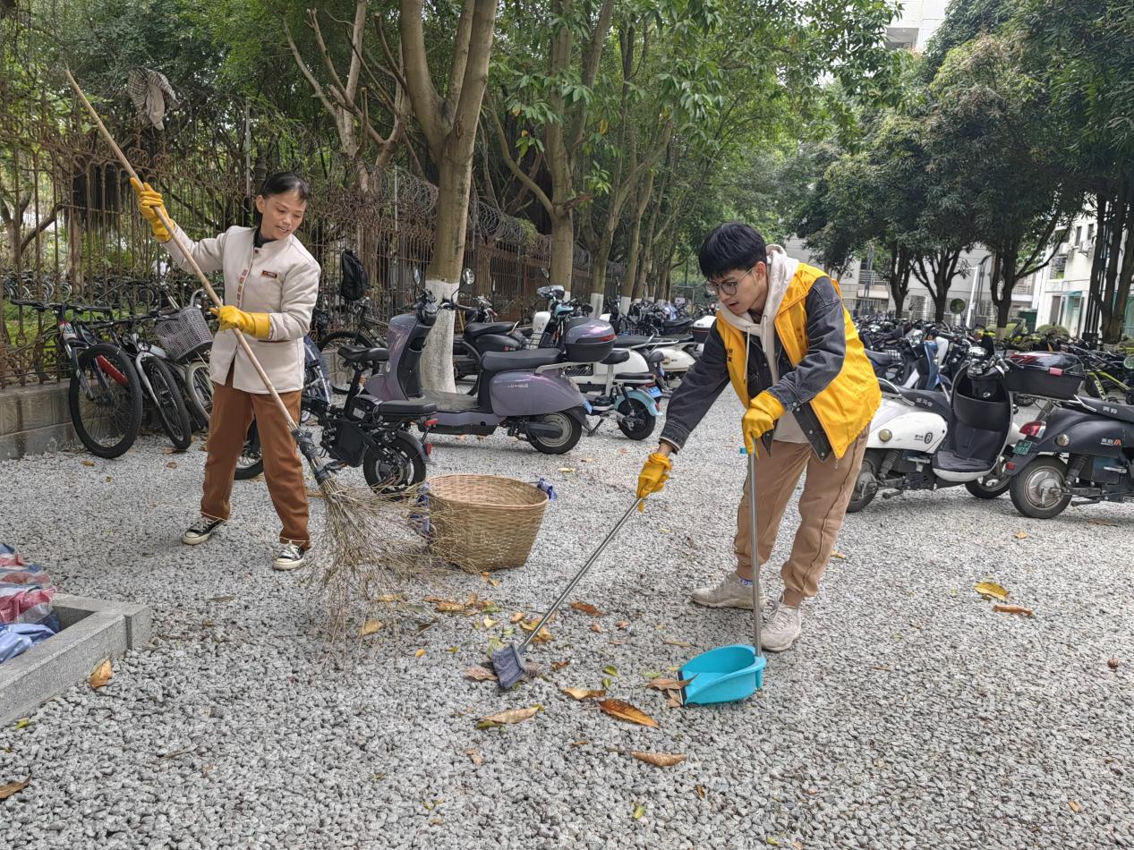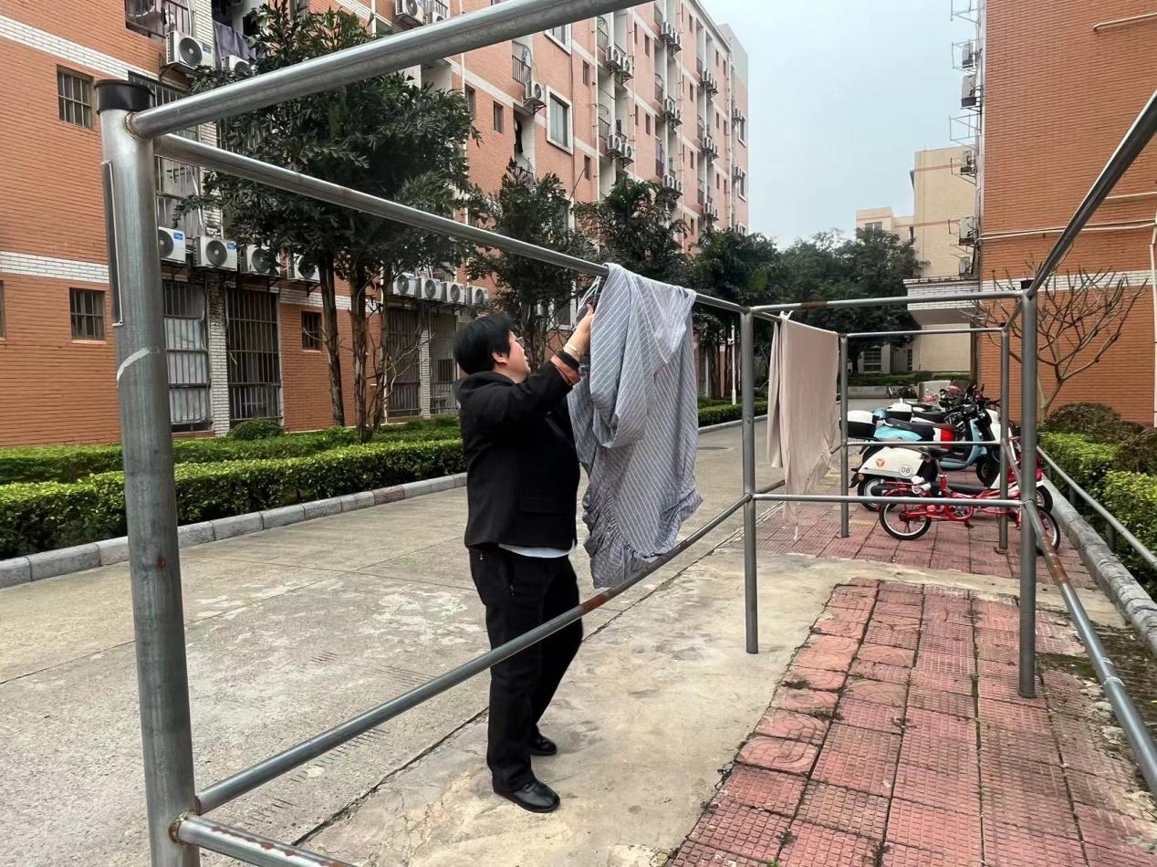 认真做好园区内各种设备设施和33间自习室的保洁维护工作。每日检测园区热水机组温度以及洗衣机的运营情况,定时检查园区消防设备设施情况。擦拭学生公寓园区内472个生活设施(其中公共长椅102张,乒乓球桌152张,晾衣架134个、健身器材84个)。