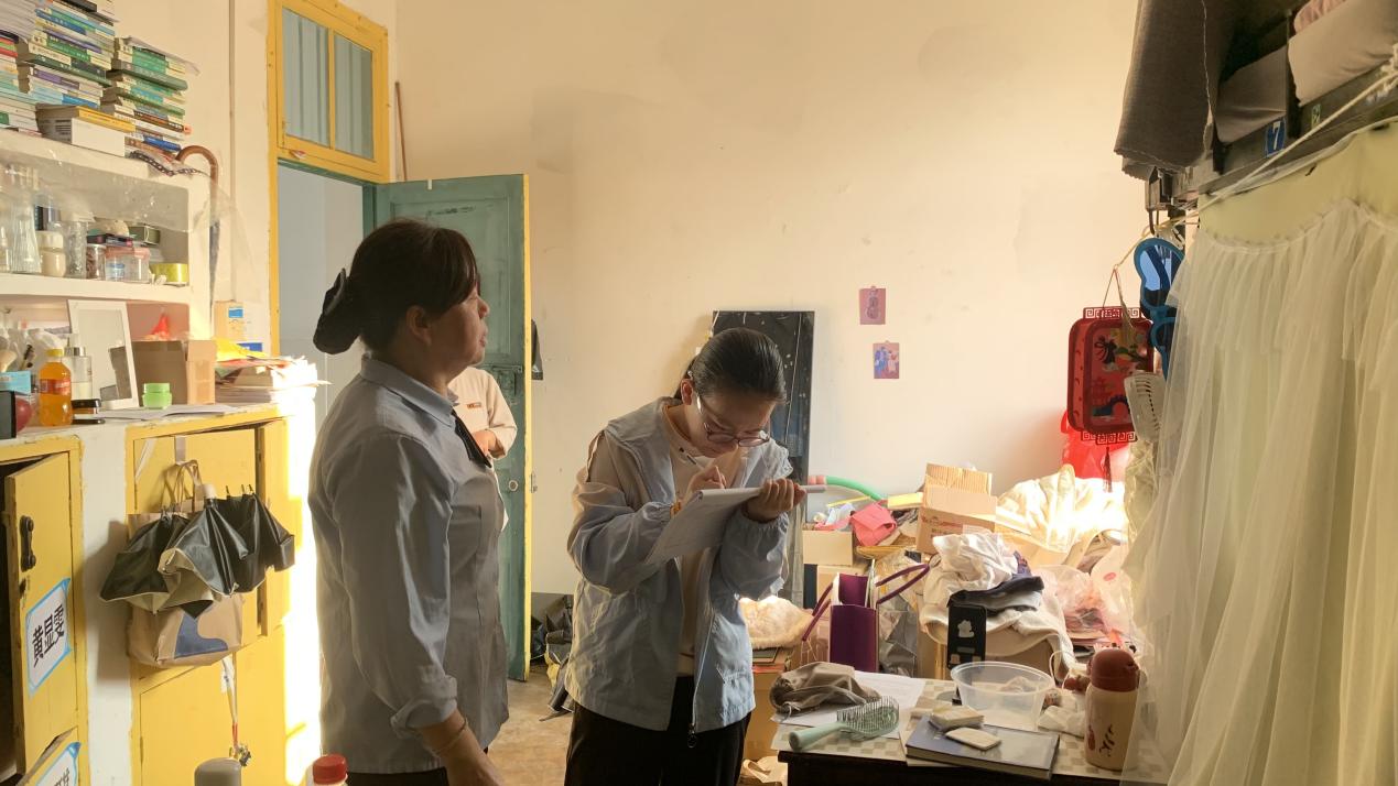 学生公寓邀请水电、维修、绿化等岗位人员及学生代表、学院铺导员老师、丹田物业一起联合月检