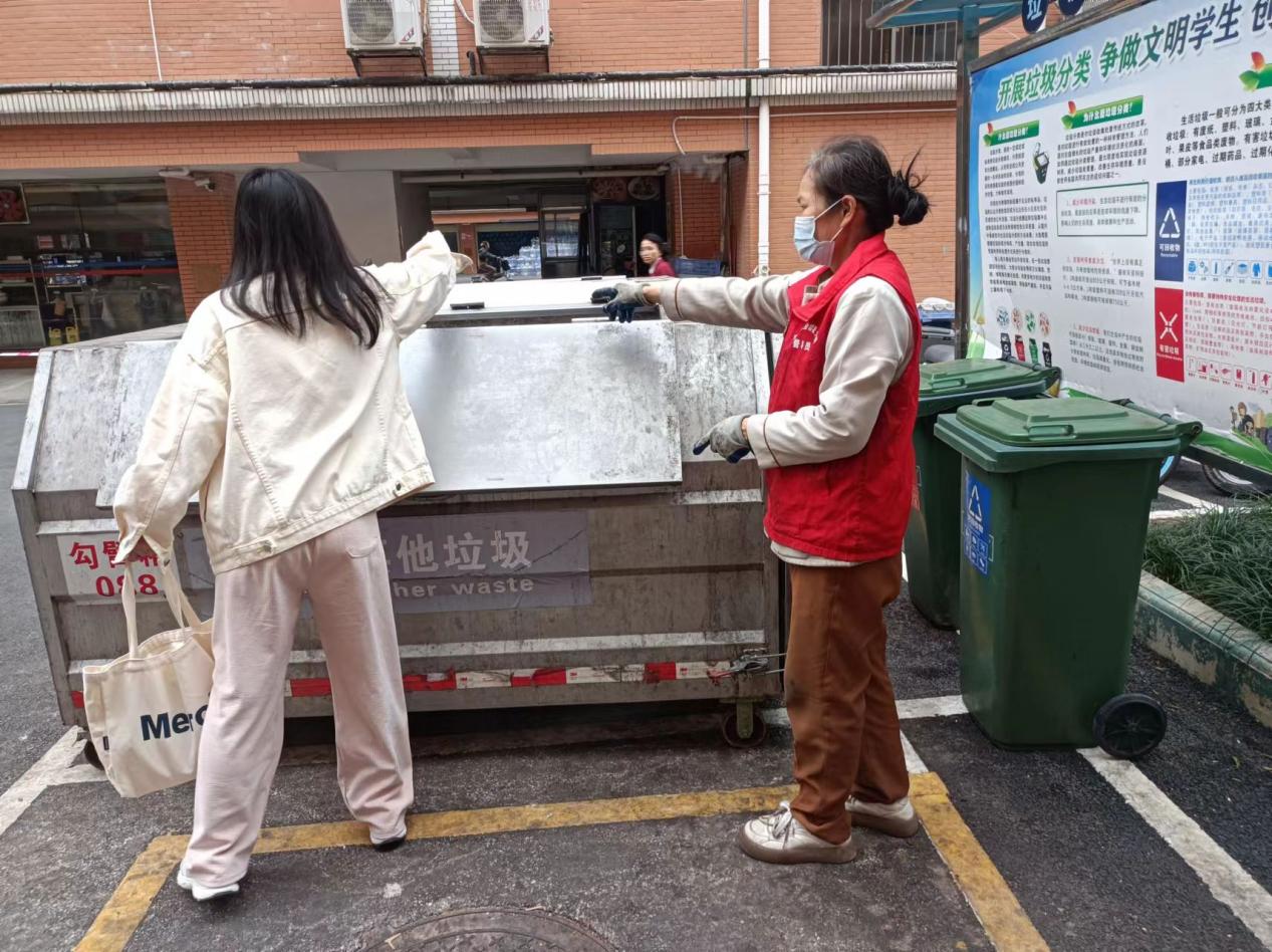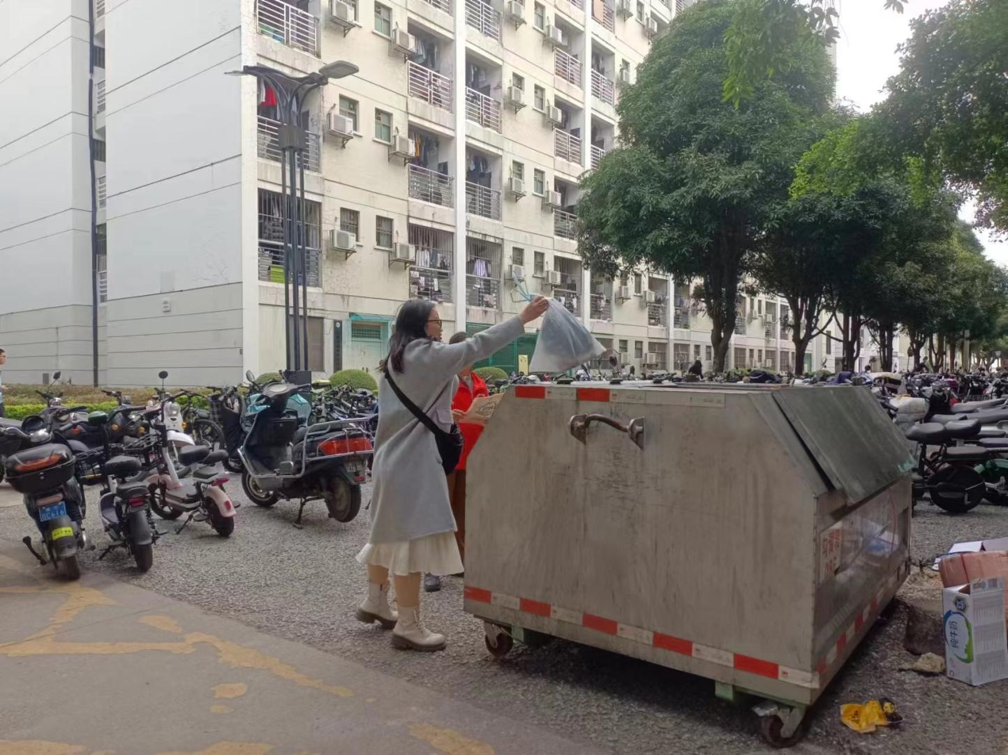 本周垃圾分类督导员共处理垃圾约52.201吨,其中厨余垃圾约24.92吨、其他垃圾约26.8吨、可回收垃圾约0.48吨、有害垃圾约 0.001吨;垃圾分类督导员走访学生宿舍并发放垃圾分类宣传单216多张,向227多位同学宣传垃圾分类知识。