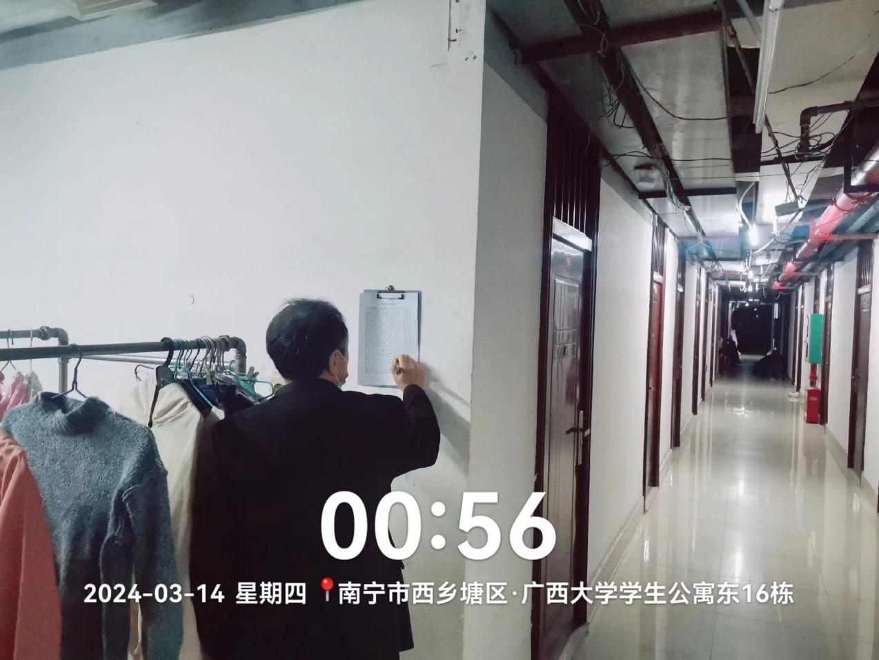春季第三周学生公寓各项服务工作有序开展,本周到宿舍走访学生146人次,解决学生反映的洗衣机问题,天面漏水问题等共3起;办理宿舍业务5227人次(其中办理外宿19人,调宿学生11人,新入住学生13人,其他业务152人, 晚归登记5032人次)。