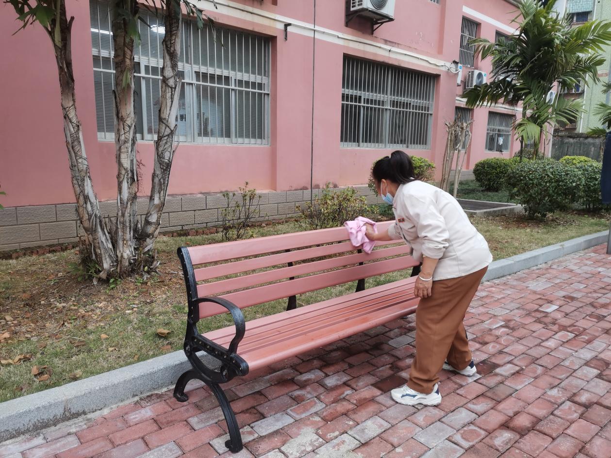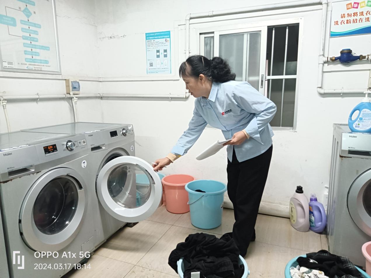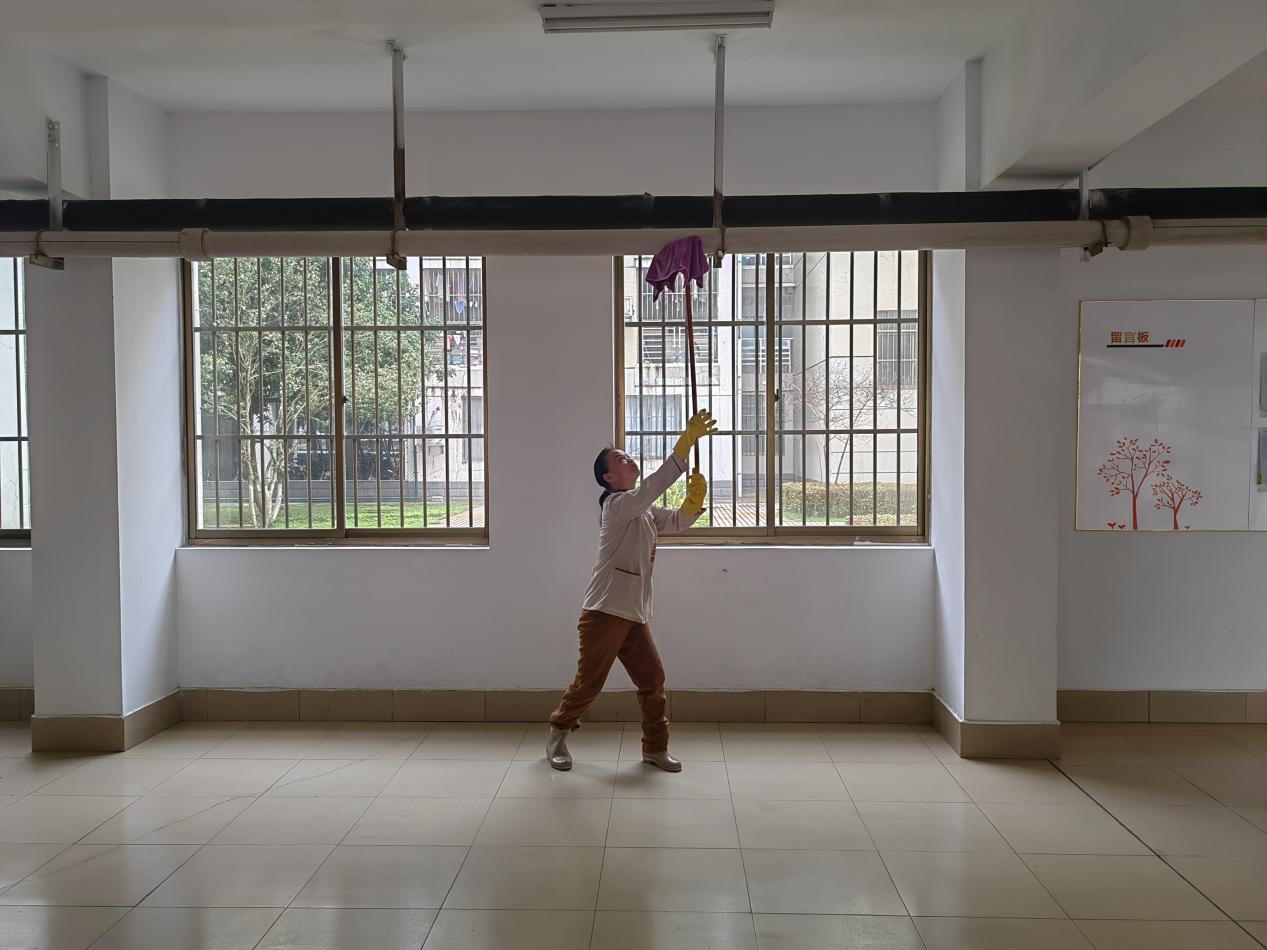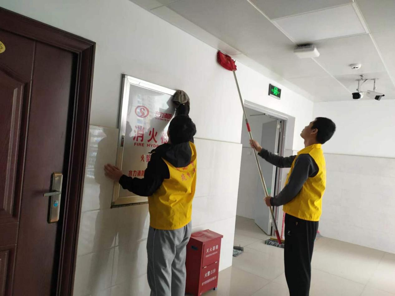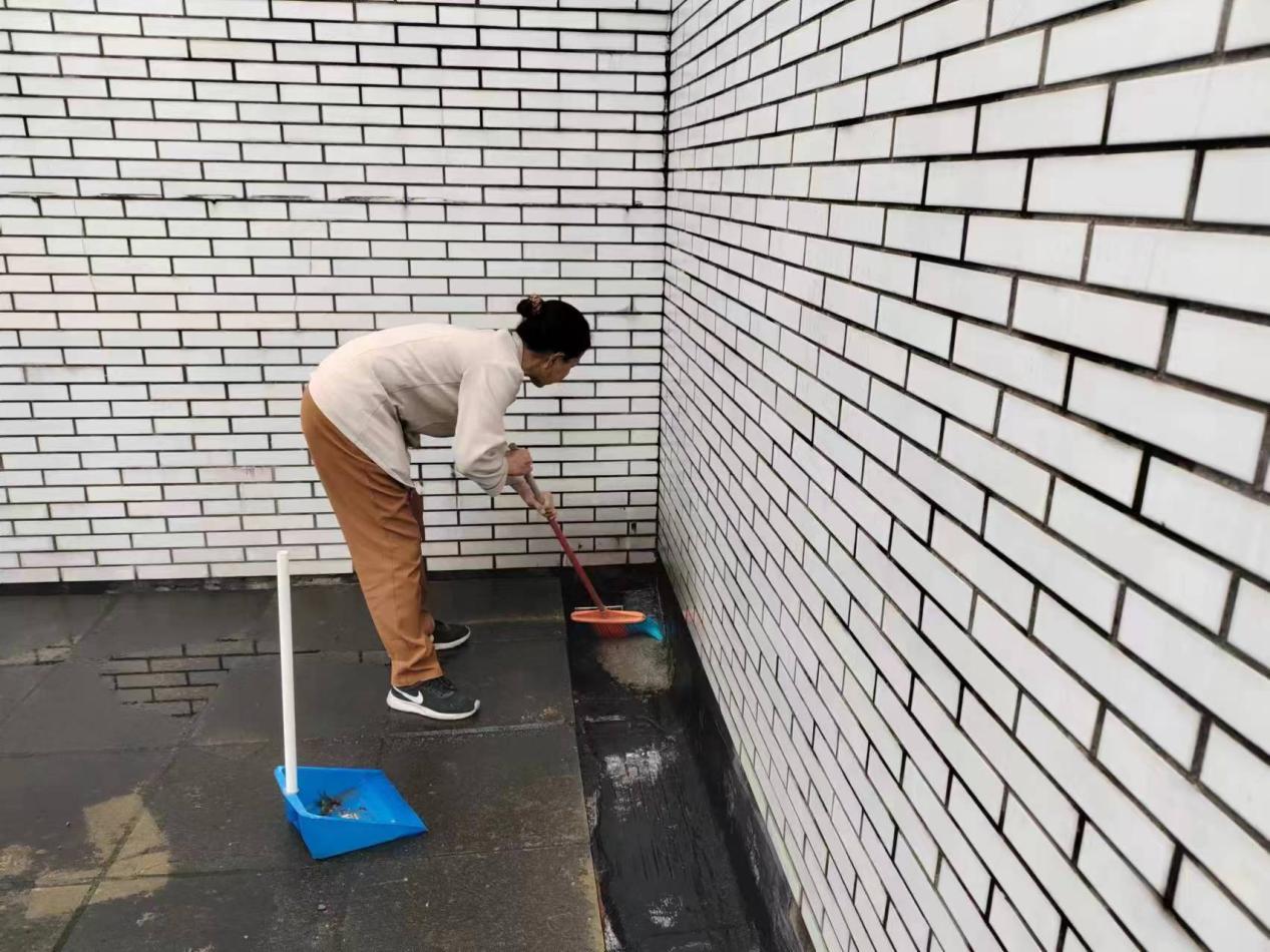 认真做好园区内各种设备设施和33间自习室的保洁维护工作。每日检测园区热水机组温度以及洗衣机的运营情况,定时检查园区消防设备设施情况。擦拭学生公寓园区内472个生活设施(其中公共长椅102张,乒乓球桌152张,晾衣架134个、健身器材84个)。