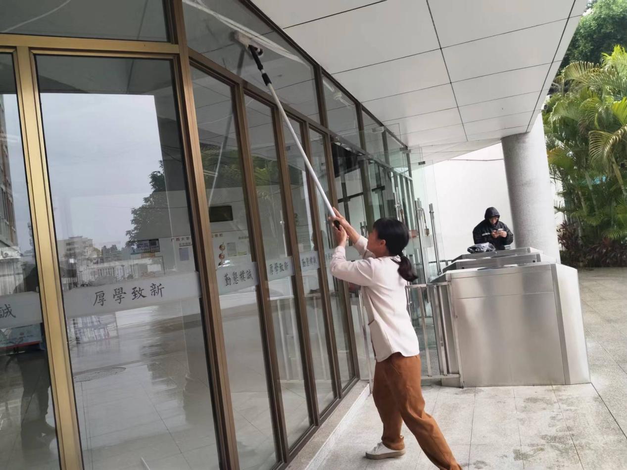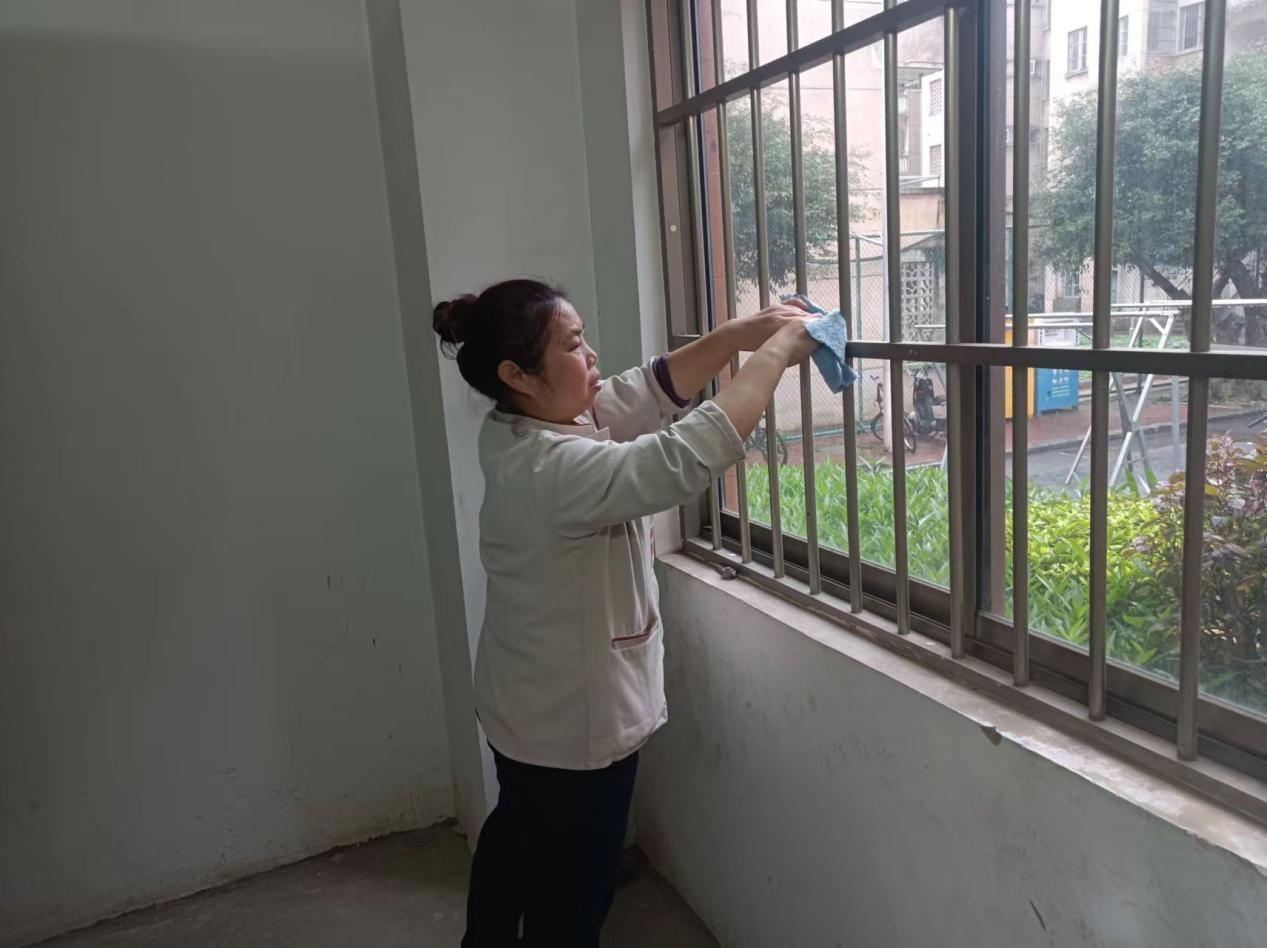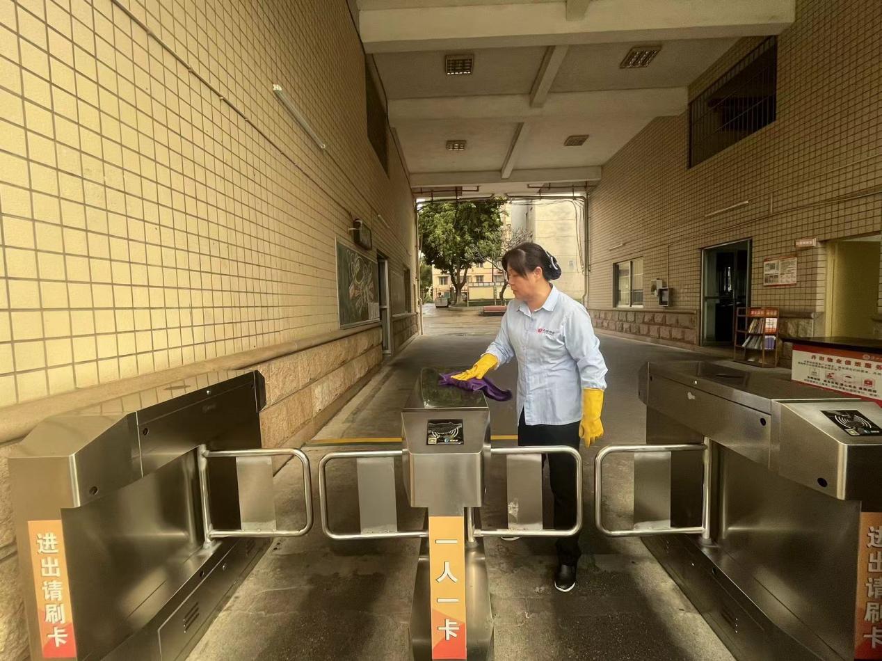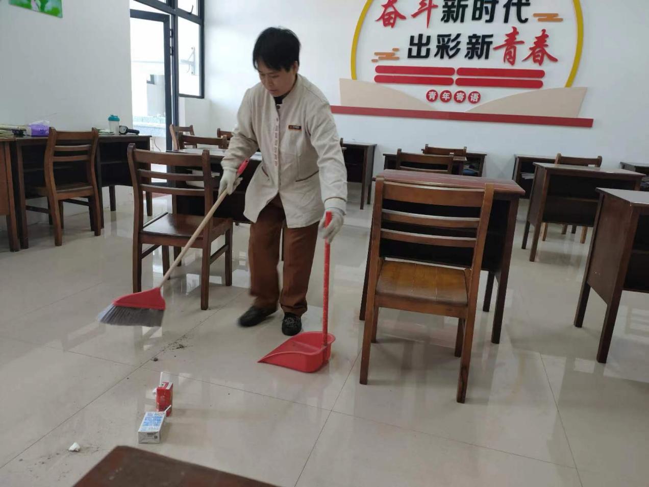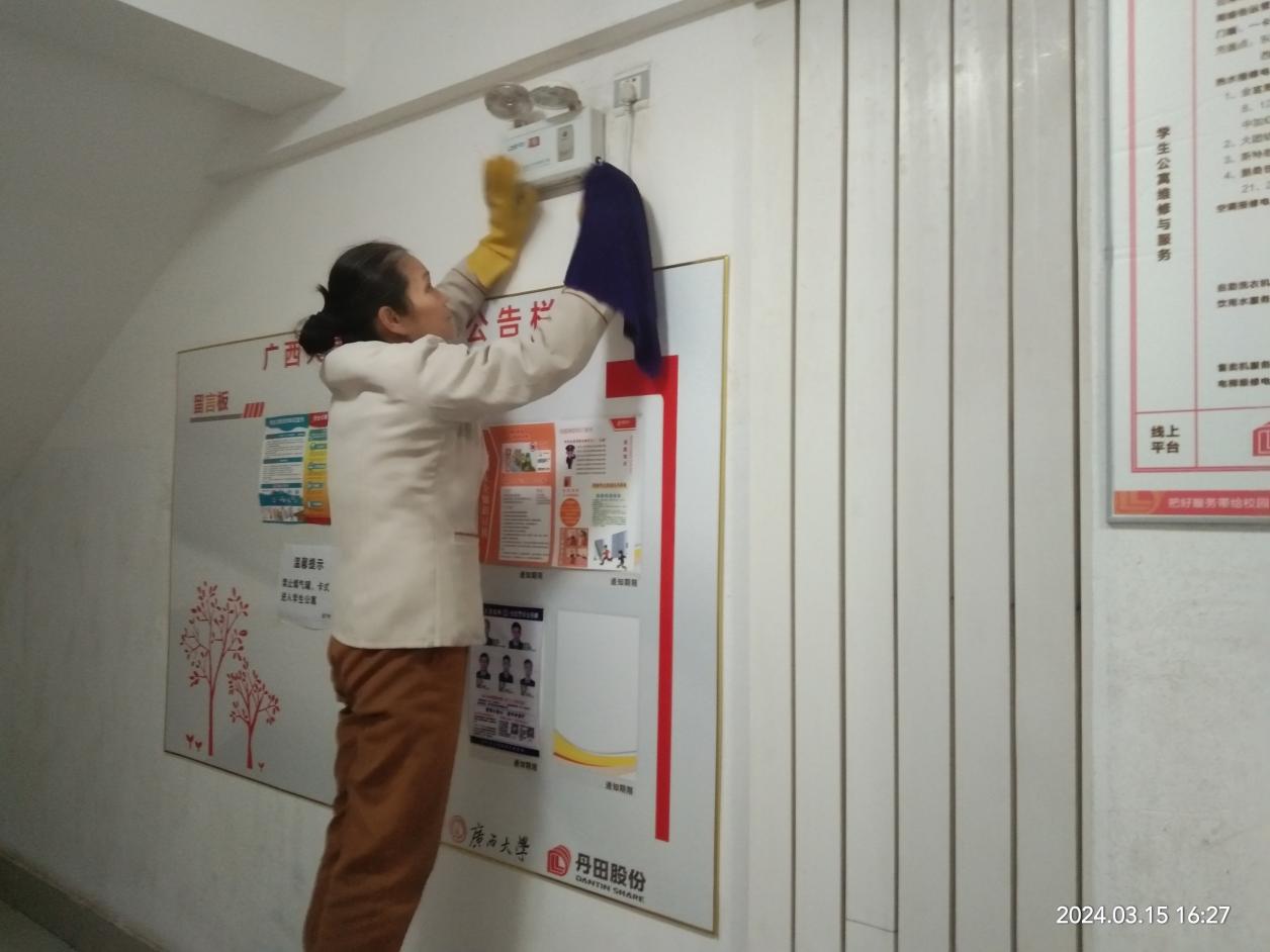认真做好园区内各种设备设施和33间自习室的保洁维护工作。每日检测园区热水机组温度以及洗衣机的运营情况,定时检查园区消防设备设施情况。擦拭学生公寓园区内472个生活设施(其中公共长椅102张,乒乓球桌152张,晾衣架134个、健身器材84个)。