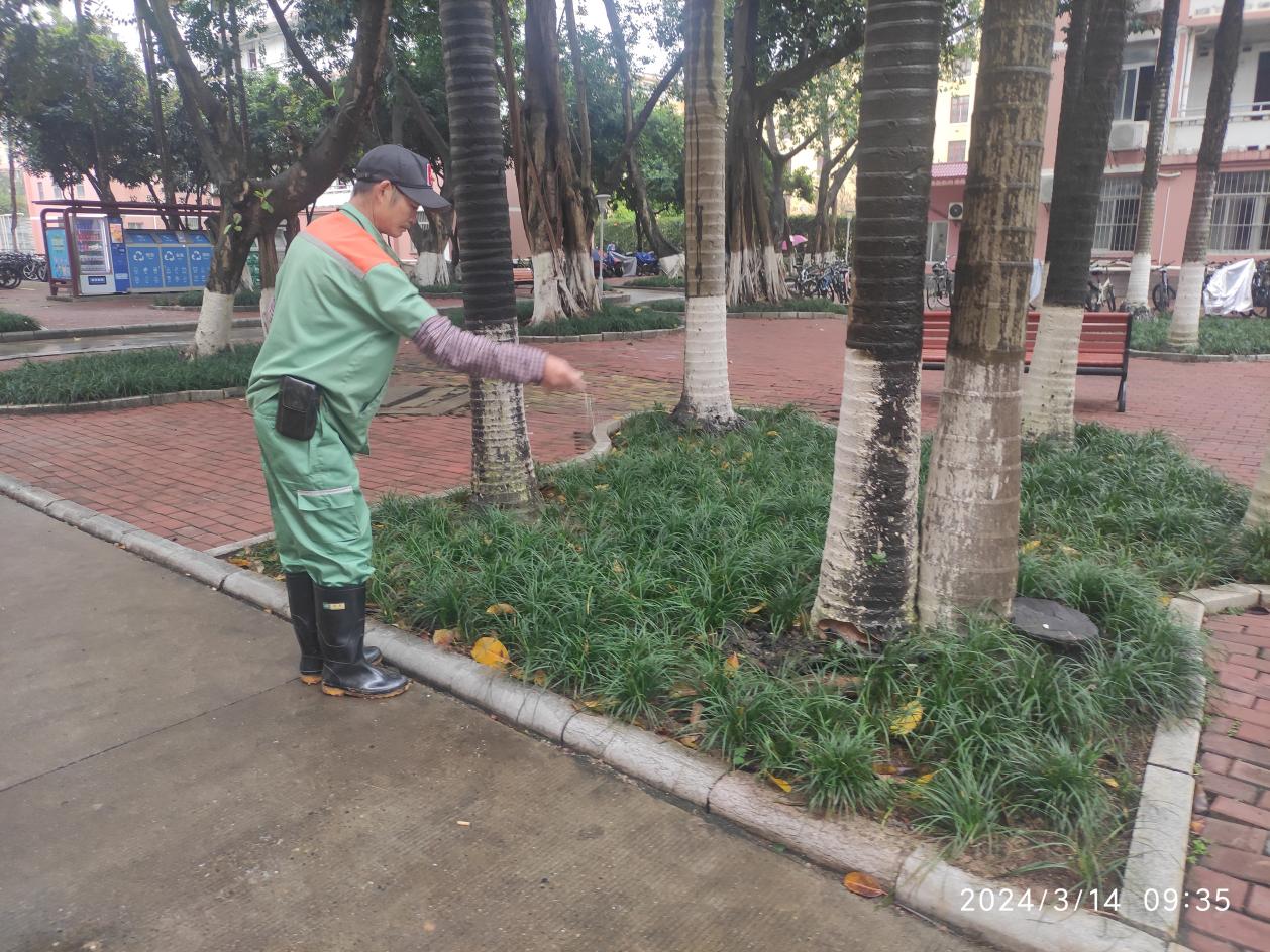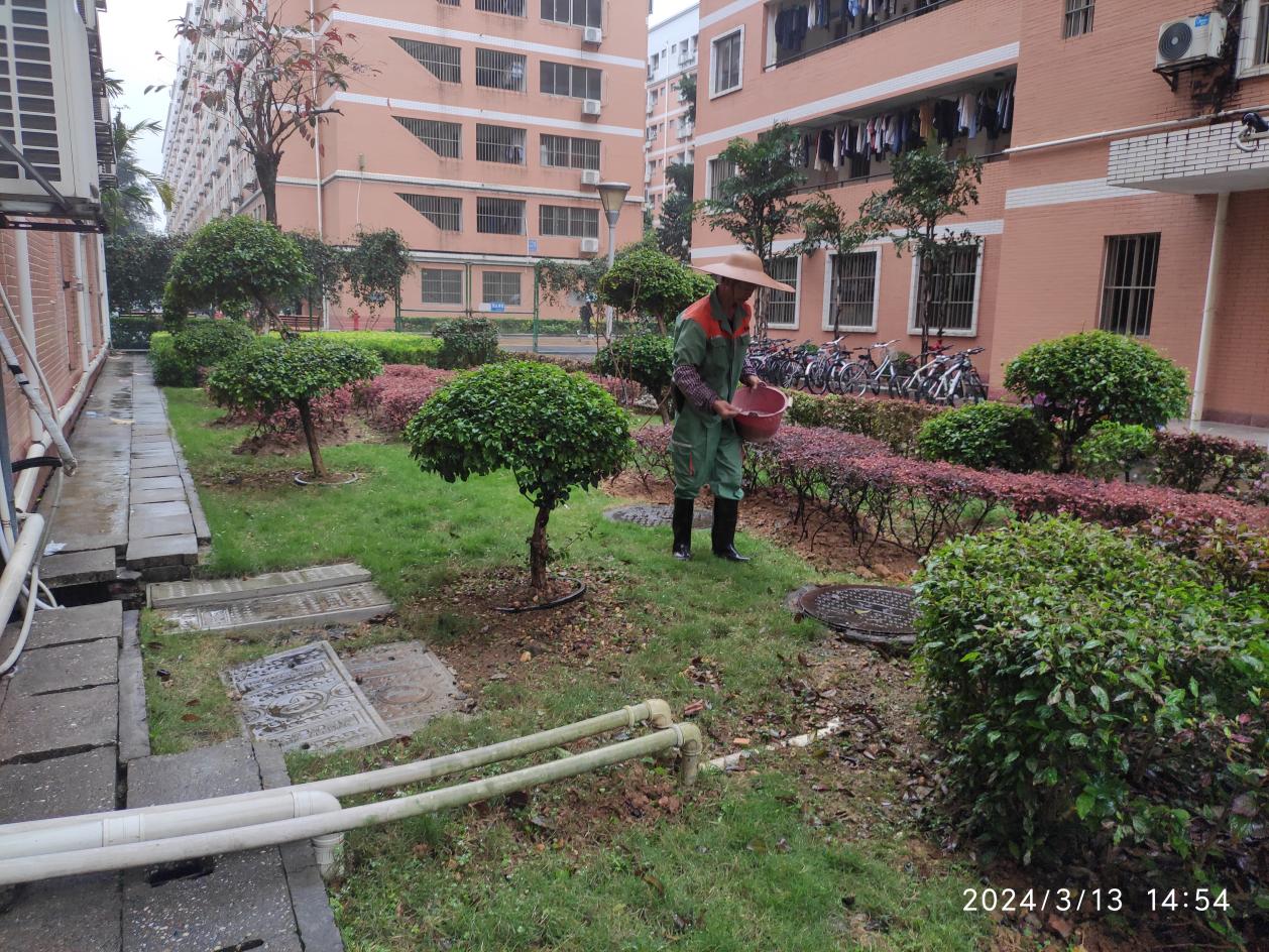 持续做好楼栋日常保洁和公寓园区绿植养护工作。进行日常保洁约19万平方米,清理明沟水沟长度约3270米;本周绿化主要进行各园区绿化施肥以及草坪打理。