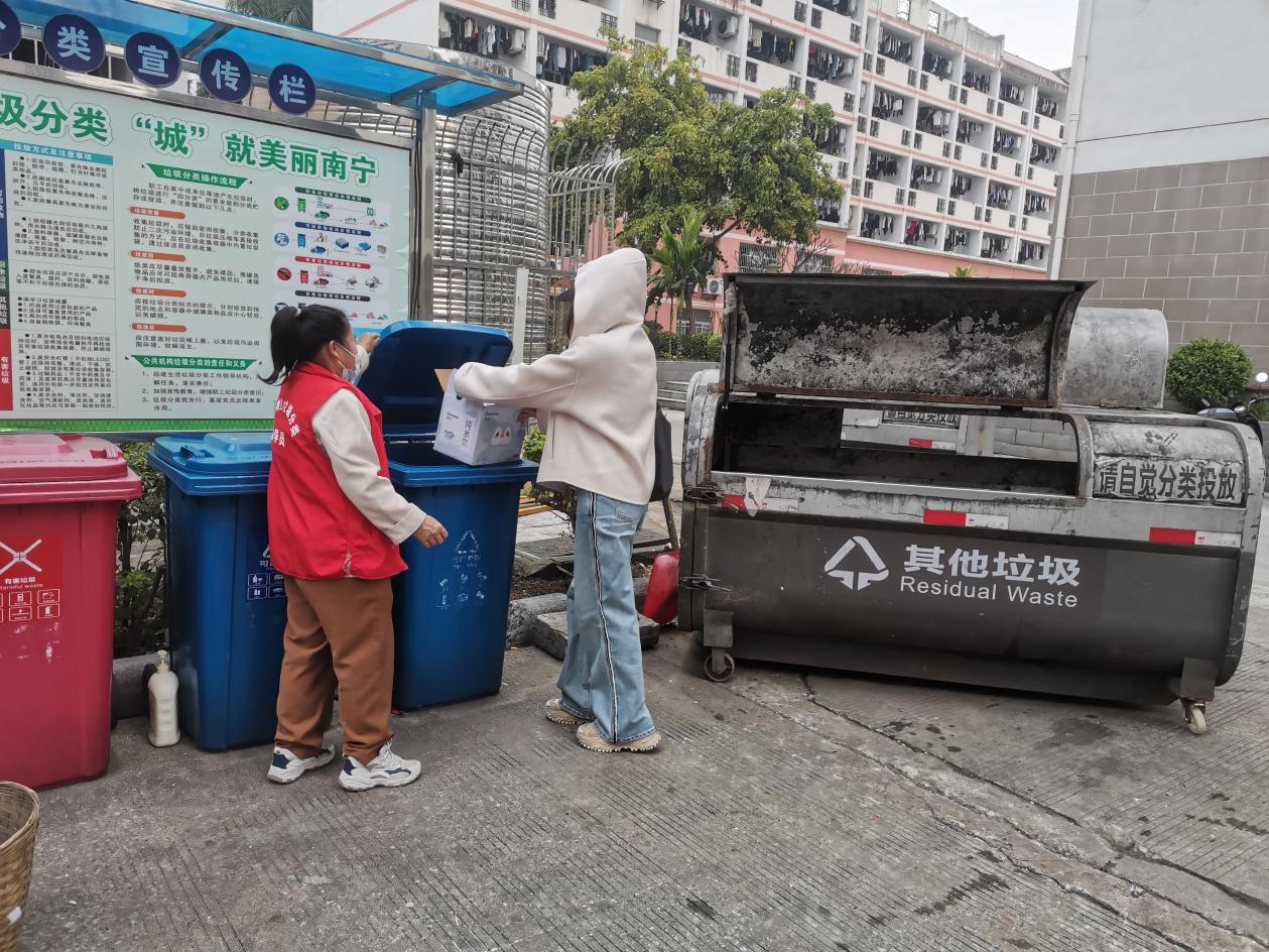 本周垃圾分类督导员共处理垃圾约54.541吨(其中厨余垃圾约26吨、其他垃圾约28吨、可回收垃圾约0.54吨、有害垃圾约 0.001吨);垃圾分类督导员走访学生宿舍并发放垃圾分类宣传单188多张,向206多位同学宣传垃圾分类知识。
