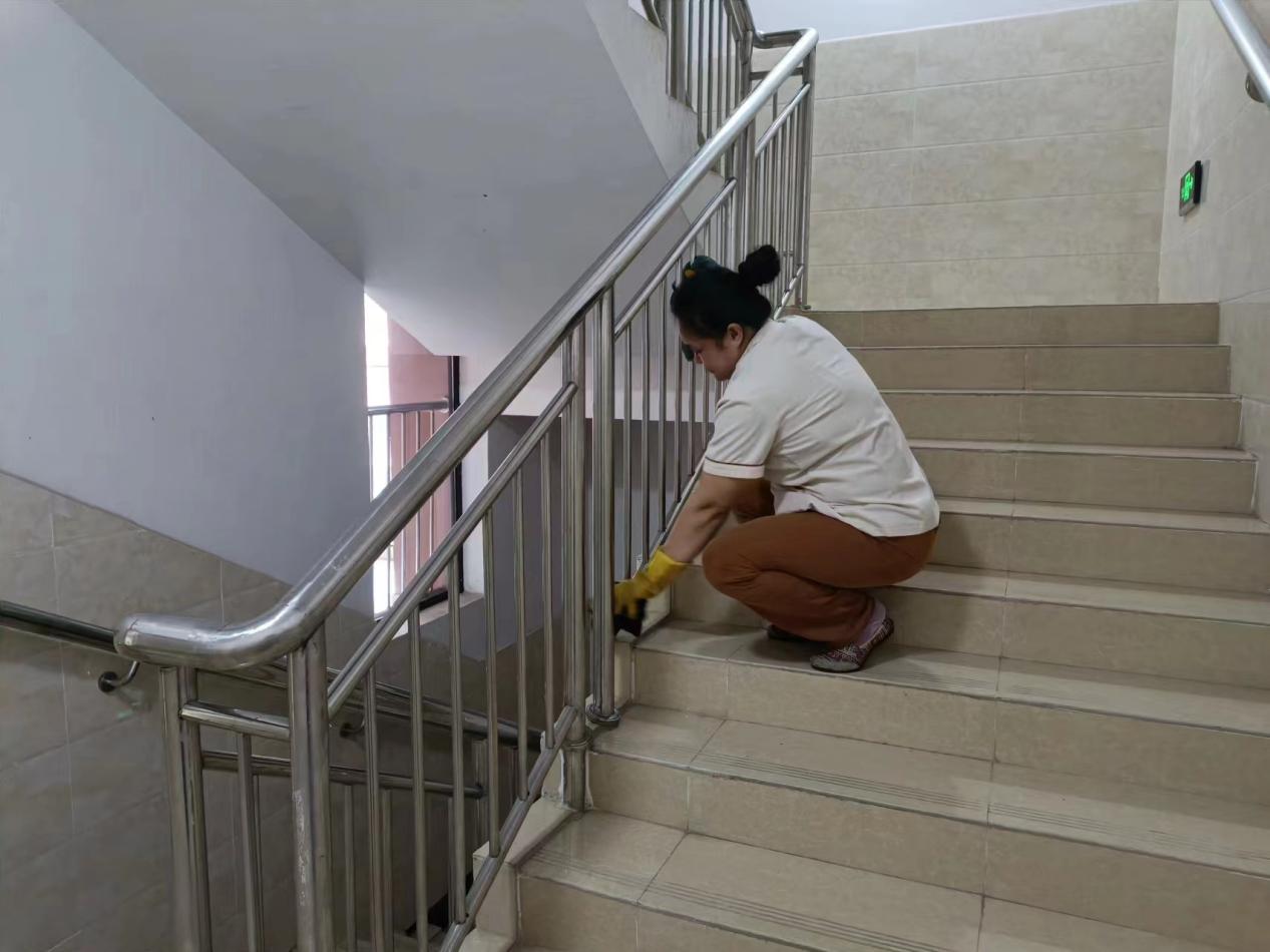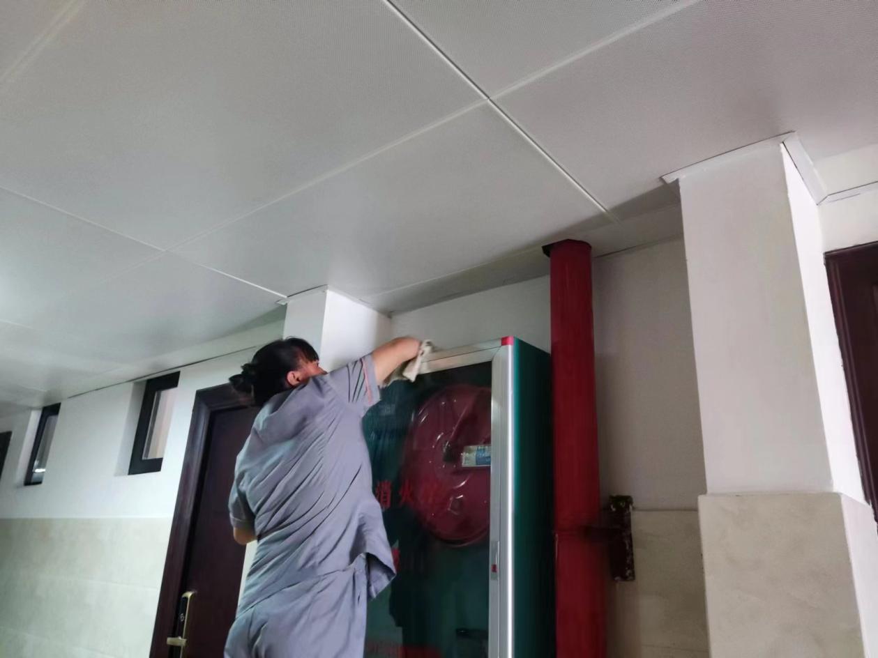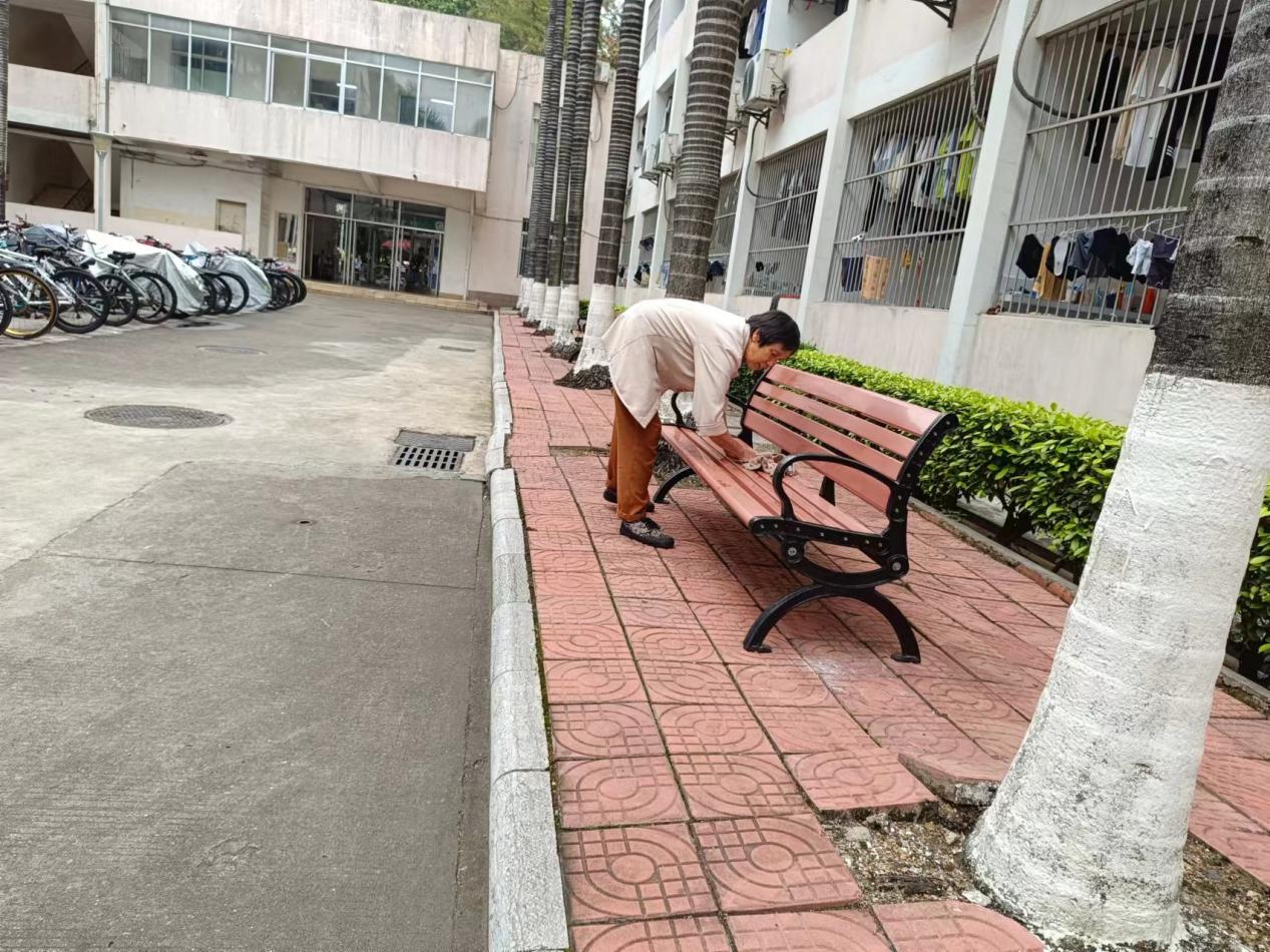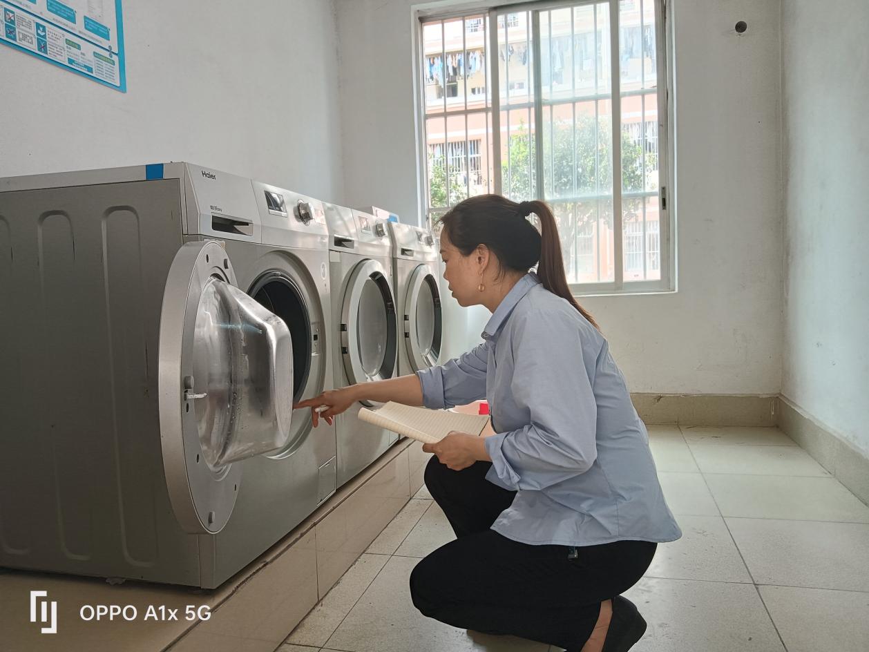 认真做好园区内各种设备设施和33间自习室的保洁维护工作。每日检测园区热水机组温度以及洗衣机的运营情况,定时检查园区消防设备设施情况。擦拭学生公寓园区内472个生活设施(其中公共长椅102张,乒乓球桌152张,晾衣架134个、健身器材84个)。