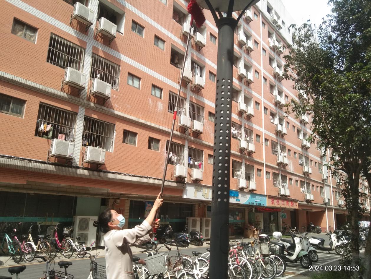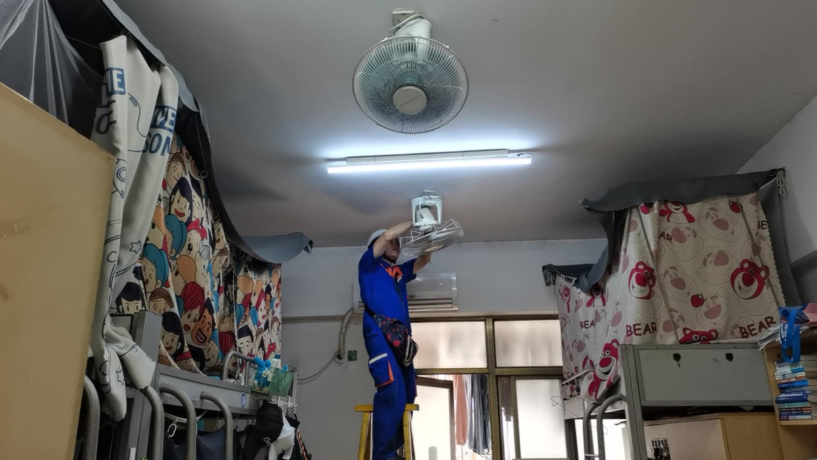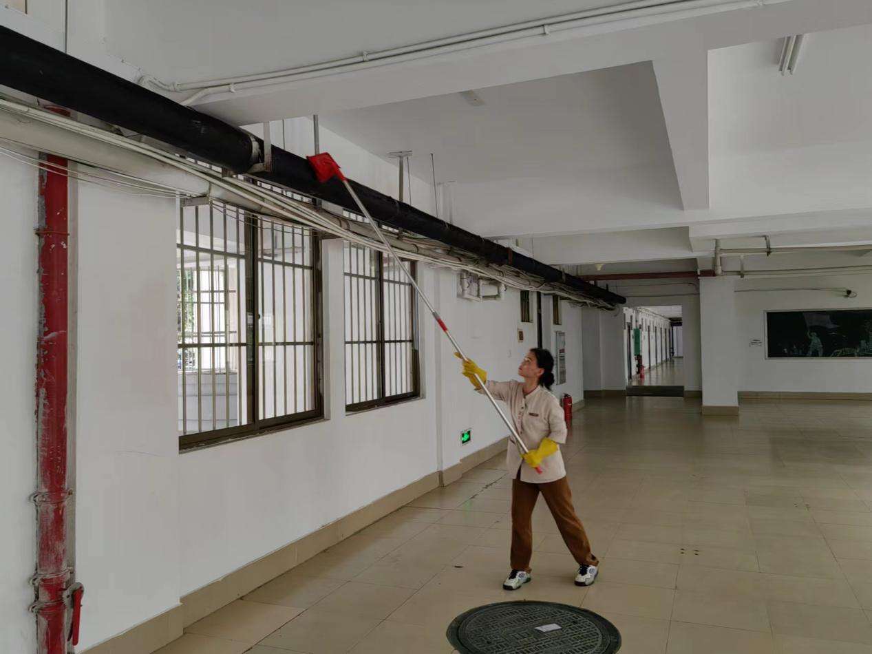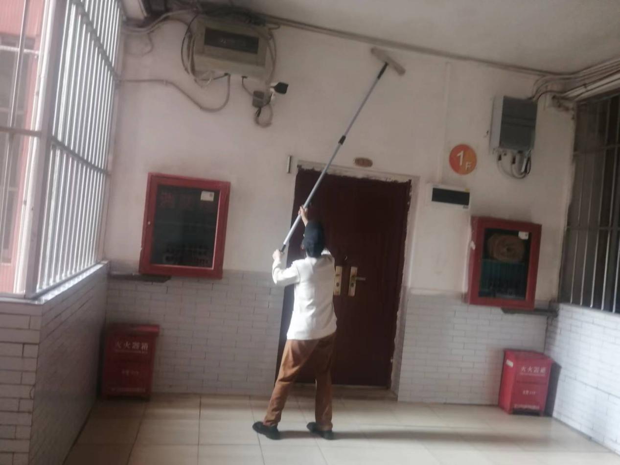 认真做好园区内各种设备设施和33间自习室的保洁维护工作。每日检测园区热水机组温度以及洗衣机的运营情况,定时检查园区消防设备设施情况。擦拭学生公寓园区内472个生活设施(其中公共长椅102张,乒乓球桌152张,晾衣架134个、健身器材84个)。