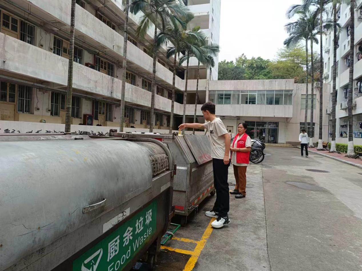 本周垃圾分类督导员共处理垃圾约52.901吨,其中厨余垃圾约25.68吨、其他垃圾约26.6吨、可回收垃圾约0.62吨、有害垃圾约 0.001吨;垃圾分类督导员走访学生宿舍并发放垃圾分类宣传单224多张,向232多位同学宣传垃圾分类知识。