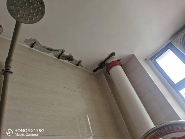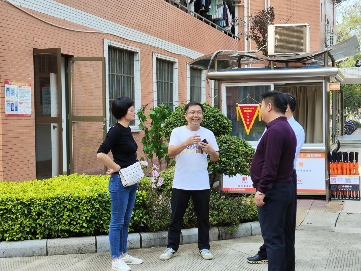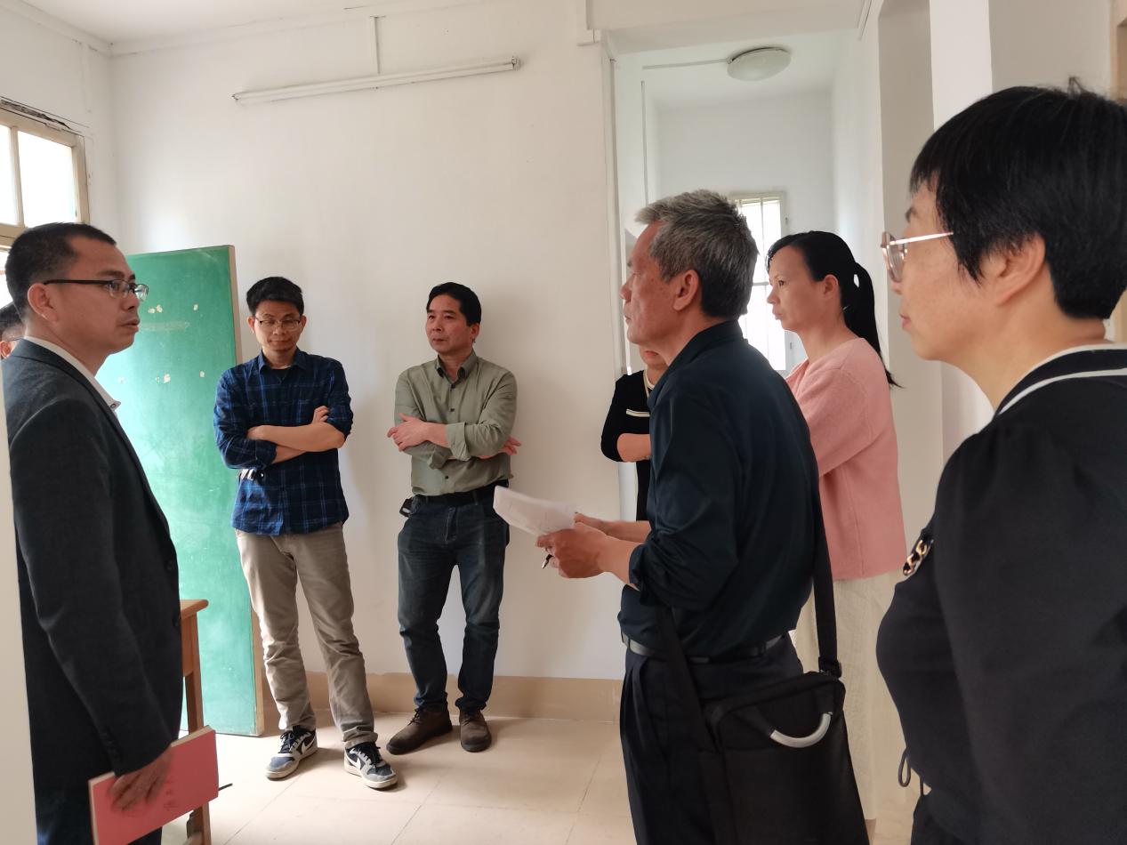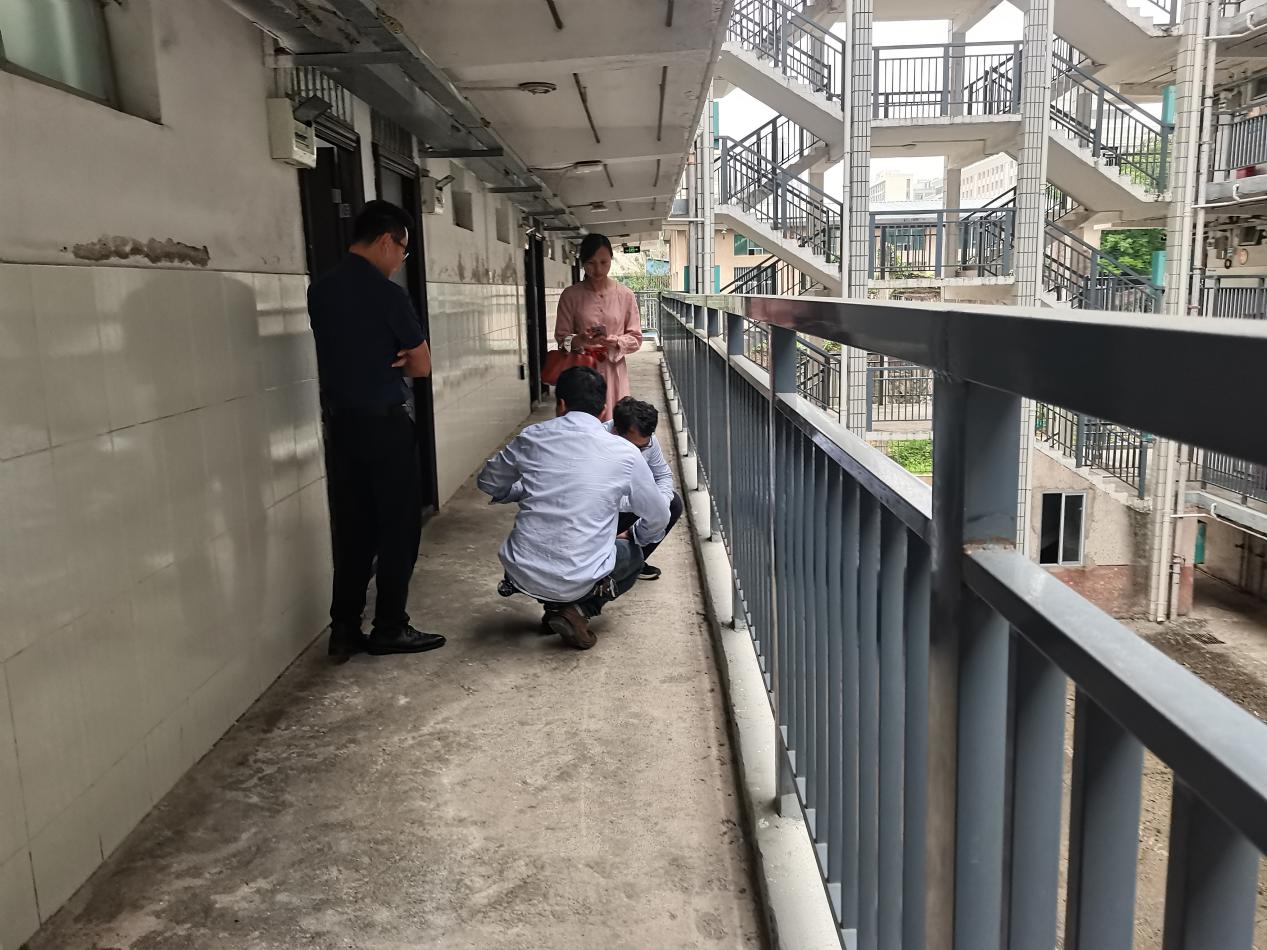 工作人员和设计公司现场勘查西28栋项目施工内容