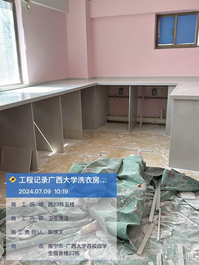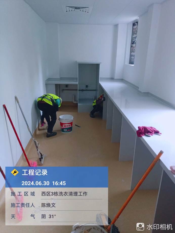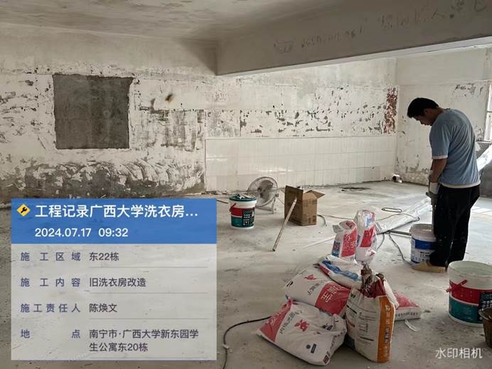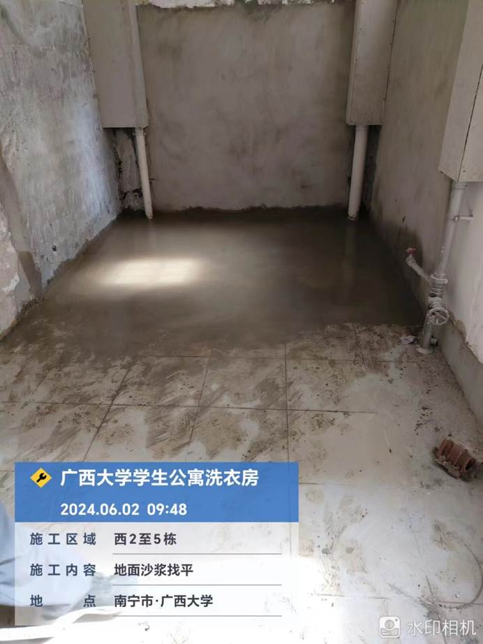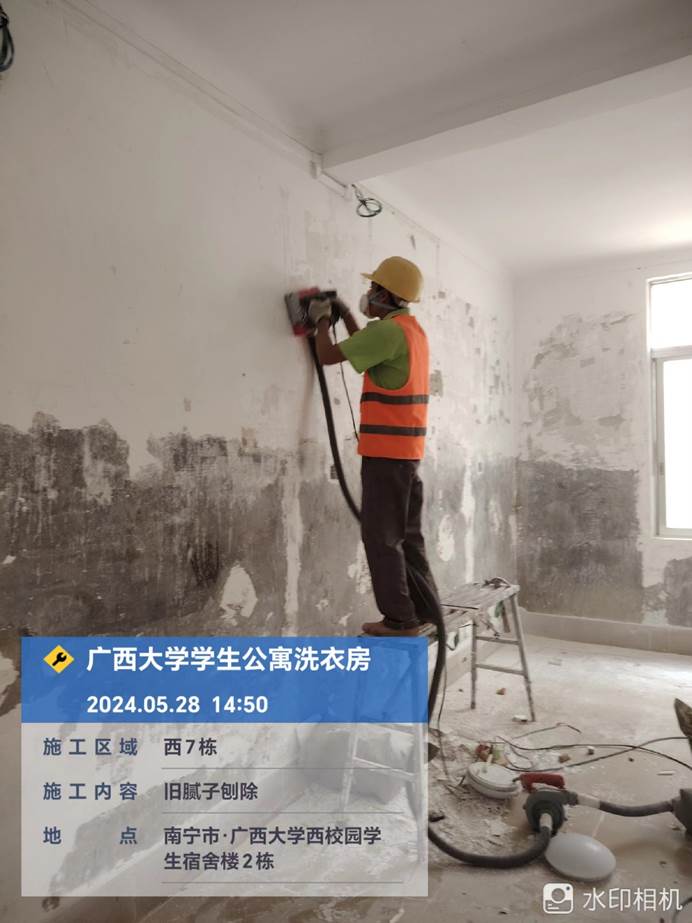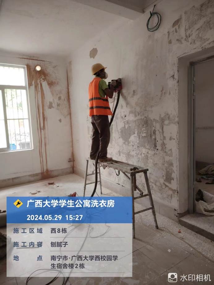 2024年5月24日,西21.22.23洗衣房室内旧腻子铲除,地面平整
