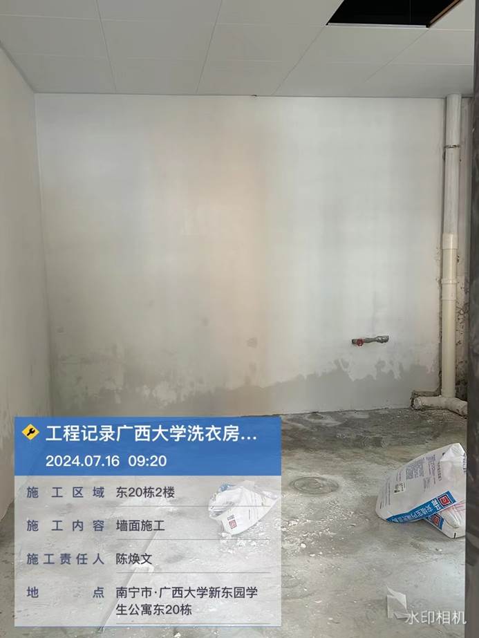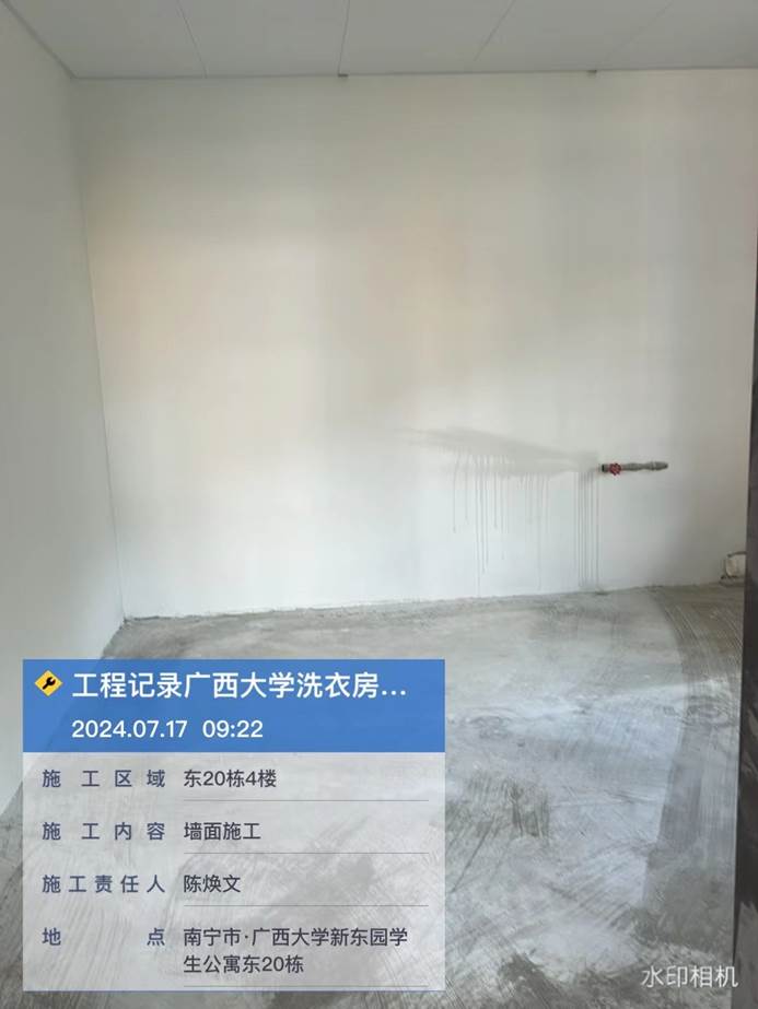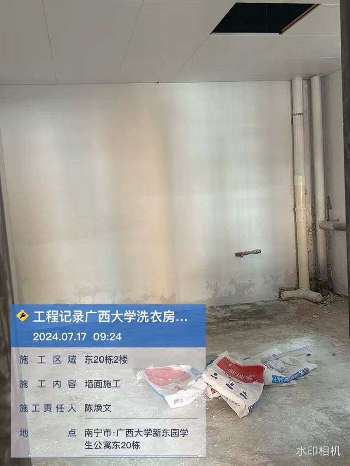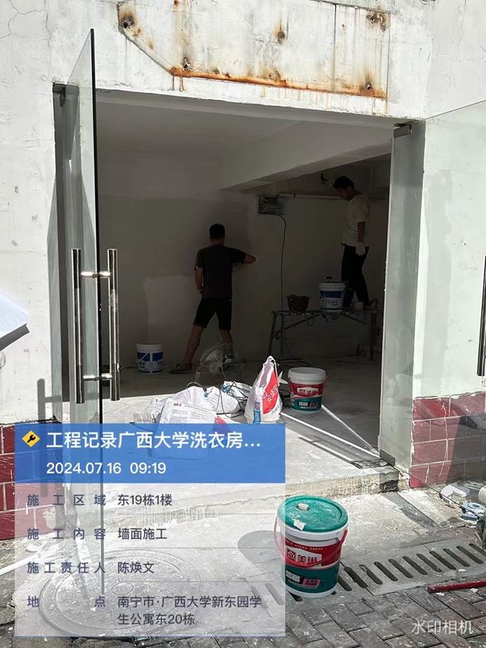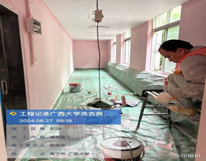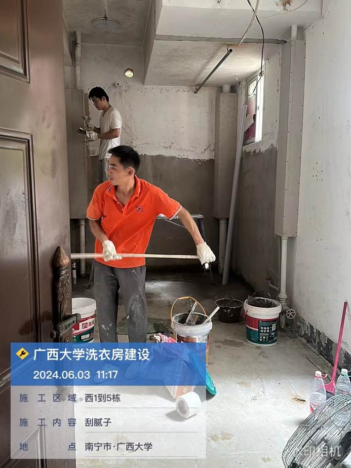 4月8日,共享洗衣样板房墙面施工中