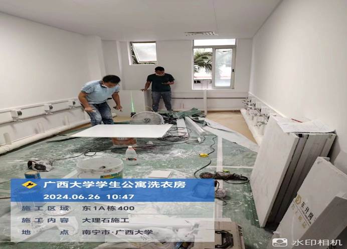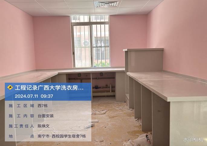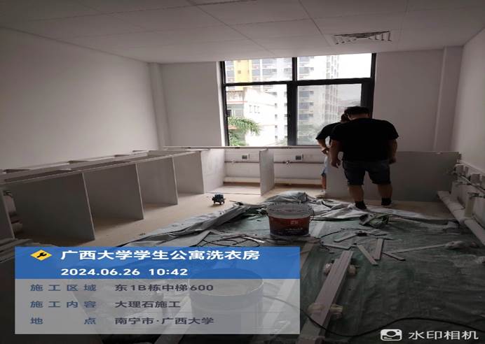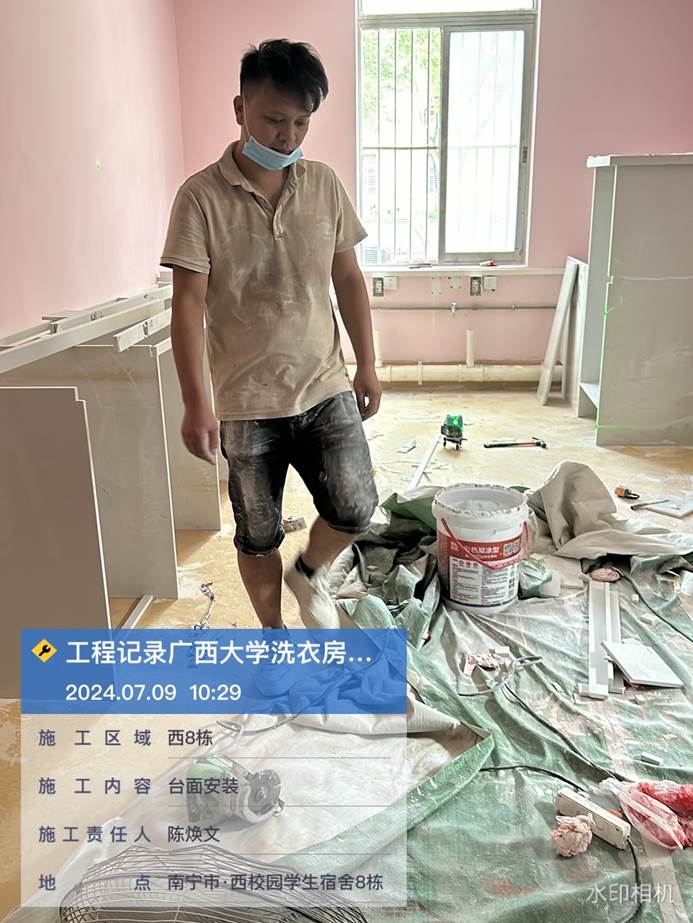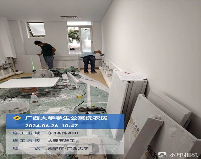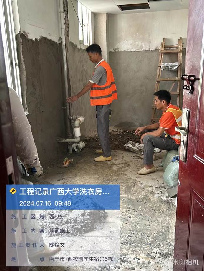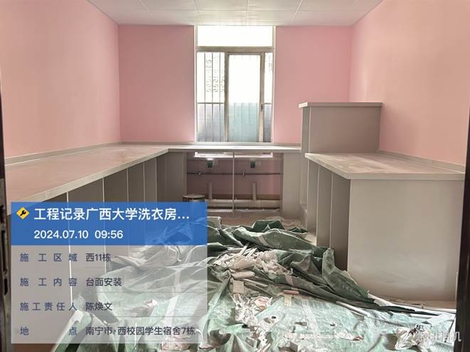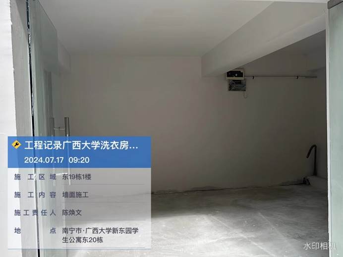 4月8日,共享洗衣样板房墙面施工中