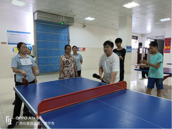 校领导与运动员进行乒乓球表演赛