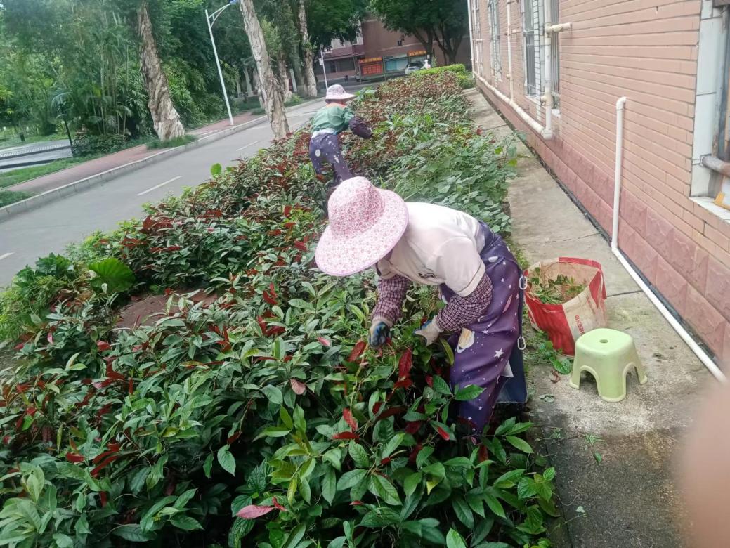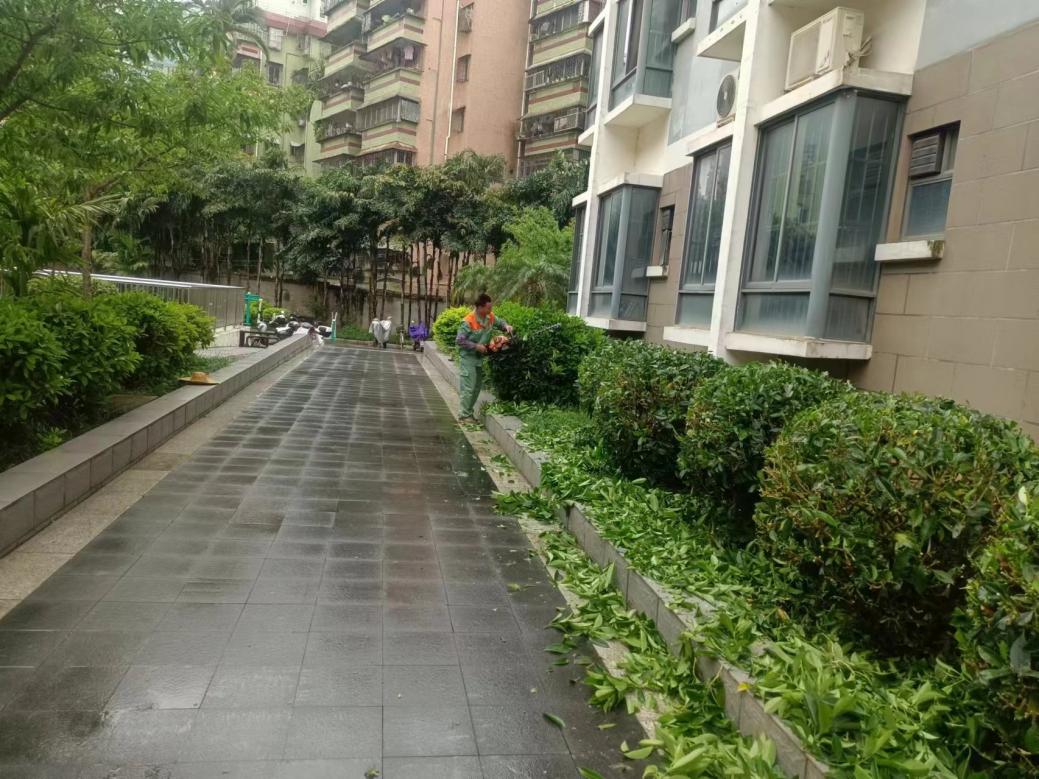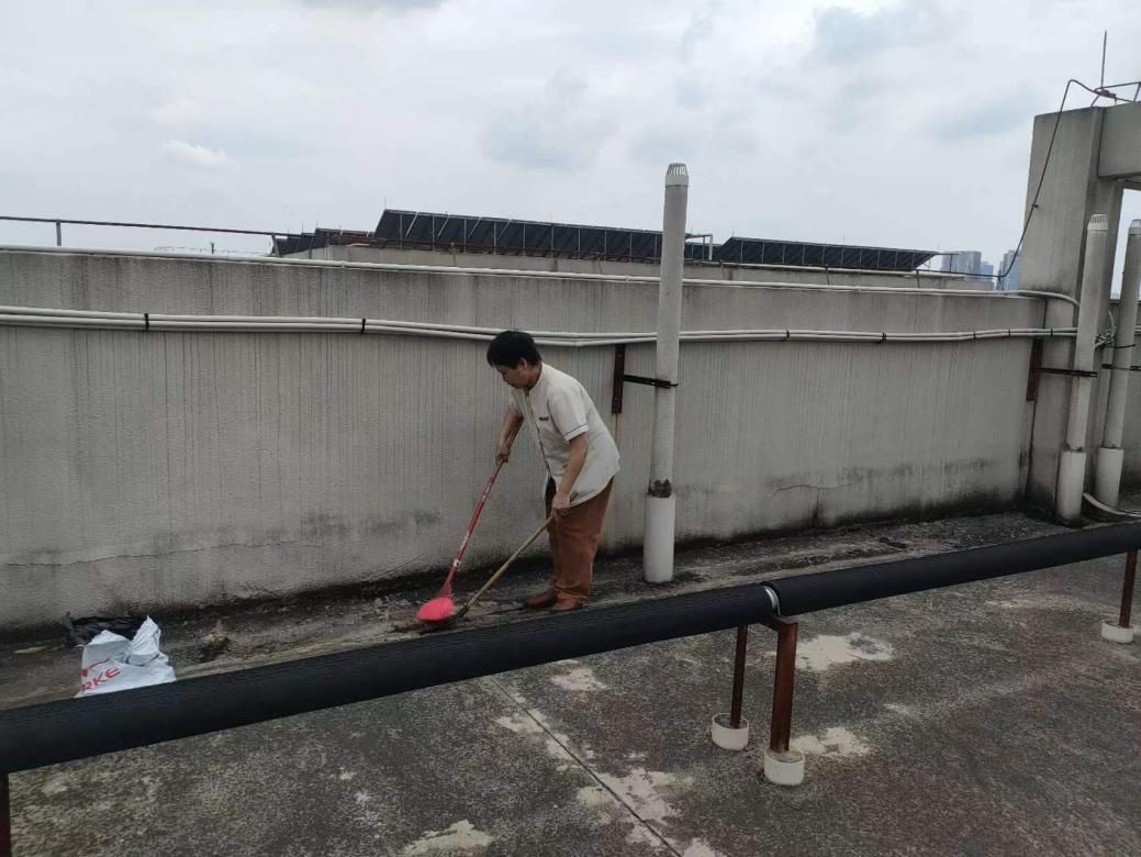 本周持续做好公寓园区绿植养护和园区日常保洁工作。本周保洁工作重点为毕业生的空房保洁工作,6月29日至7月5日,完成毕业生空房初步保洁345间,清洗毕业生房风扇1863台;本周绿化重点为绿化修剪工作。