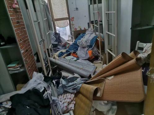 党委常委、副校长宁旭初带队到学生公寓东22栋现场踏勘