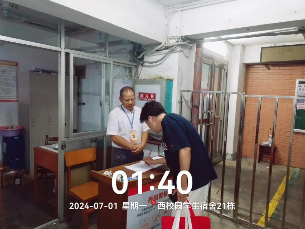春季第十九周学生公寓各项服务工作有序开展,目前已办理了9964名毕业生的退宿工作及毕业审核工作,完成2024年继续在本校升学攻读研究生的应届毕业生暑期临时借住学生宿舍安排1027人以及2024年零散宿舍调整121人。本周到宿舍走访学生176人次;办理宿舍业务5565人次(其中办理外宿26人,调宿学生8人,新入住学生8人,其他业务212人, 晚归登记5311人次)。