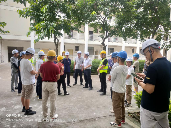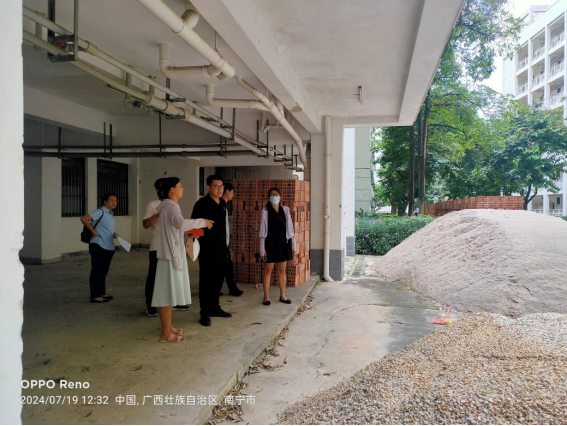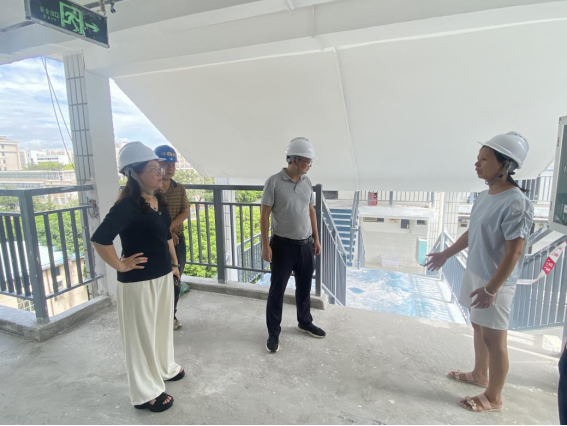 7月22日,校党委常委、副校长宁旭初带队到学生公寓西28栋现场查看施工进度