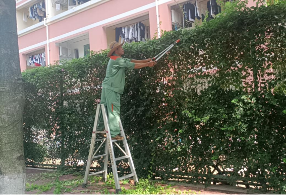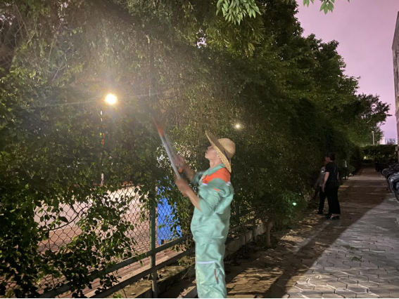 一、  在暑假期间,学生公寓持续做好楼栋日常保洁和公寓园区绿植养护工作。完成绿化带清除杂草面积约45400平方米;修剪绿植面积约57900平方米;各类树木枯枝、低枝及靠近建筑物等树枝修剪55棵.完成5次公共区域消毒消杀工作。