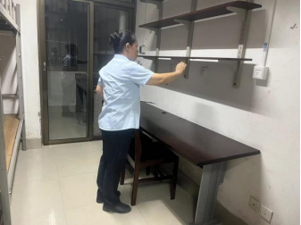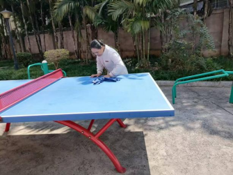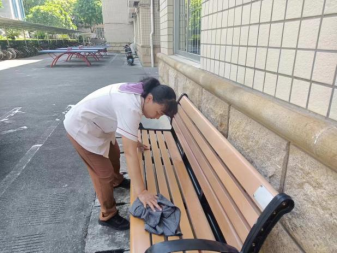 开展公寓生活设施维护。每天擦拭学生公寓园区内472个生活设施,其中公共长椅102张,乒乓球桌152张,晾衣架134个、健身器材84个及33间自习室,做好园区内生活设备设施的保洁工作。