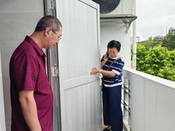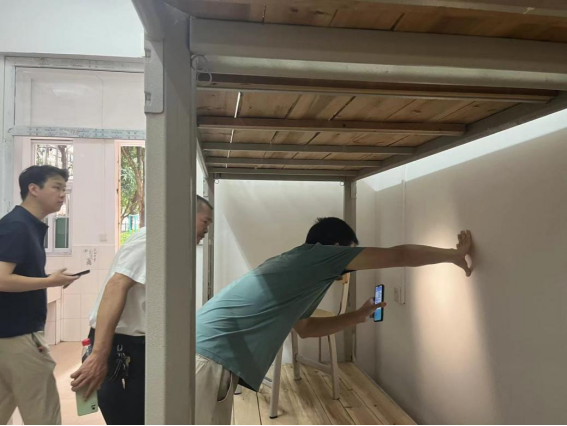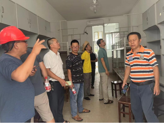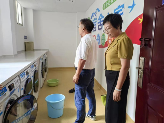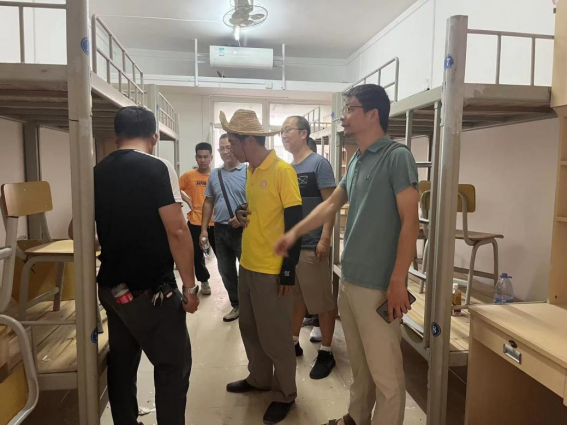 8月22日,国实处、后勤处处领导带队深入学生公寓东31-35栋现场指导工作