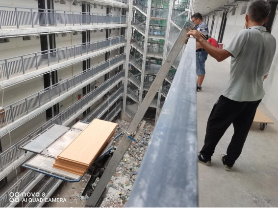 学生公寓在暑期涉及较多基础设施维修改造项目,为确保维修改造工作的顺利进行,并尽量减少对留校学生日常生活的影响,学生公寓及时推出施工提示,并加强楼栋安全巡查,在改造期间配合做好寝室门的开关、学生的疑问解答等工作。