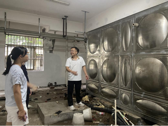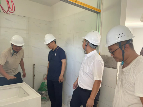 2. 凝心聚力,真抓实干——太阳集团tyc138利用暑假期间加快推进学生公寓基础设施维修改造工作。为改善学生公寓基础设施条件,保障秋季学期新生顺利入学,处党委书记、处长余波带队到暑期项目工地开展检查,现场检查施工质量和工程进度情况,针对工程质量、施工安全、人员和物资保障等方面存在的问题提出指导意见,并现场协调解决工程项目实施过程中遇到的问题。