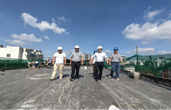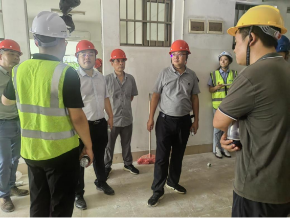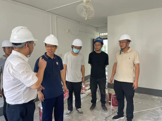 7月22日,校党委常委、副校长宁旭初带队到学生公寓东31-35栋现场查看施工进度