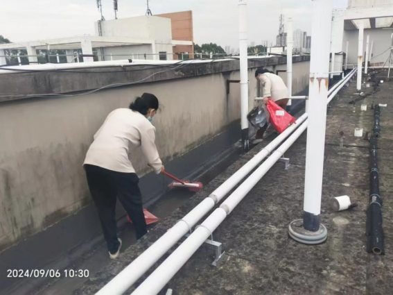 持续做好楼栋日常保洁和公寓园区绿植养护工作。进行日常保洁约19万平方米,清理明沟水沟长度约3270米;本周绿化园区重点进行东29-30栋绿化修剪以及东13园区绿化养护工作。