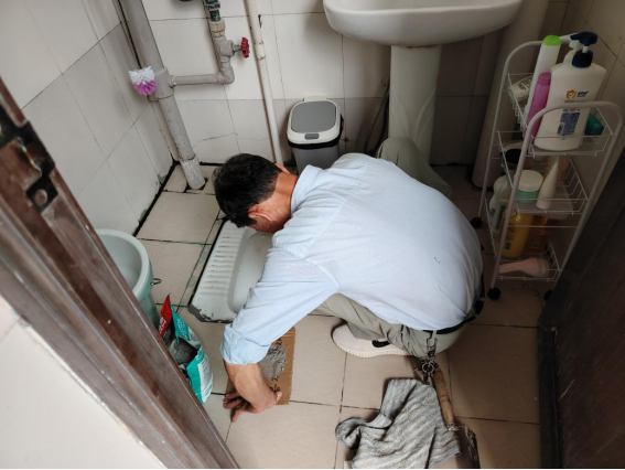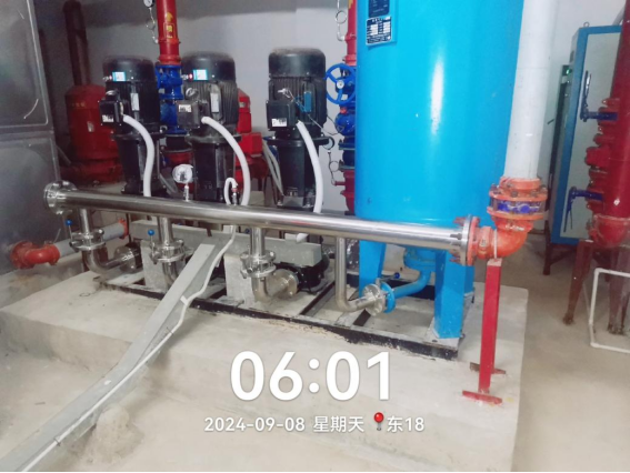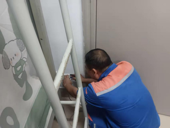 工作人员维修南区7栋消防水泵漏水问题