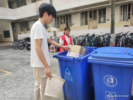 本周垃圾分类督导员共处理垃圾约44.651吨,其中厨余垃圾约21.432吨、其他垃圾约23.218吨、有害垃圾约 0.001吨;垃圾分类督导员走访学生宿舍并发放垃圾分类宣传单266多张,向278多位同学宣传垃圾分类知识。
