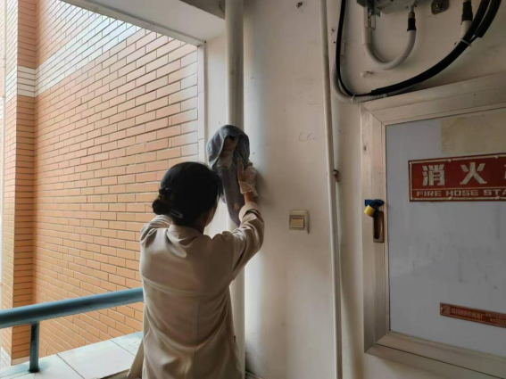为营造学生公寓园区宜学宜居的环境,认真做好园区内消防设备设施、热水机组、洗涤设备等各种设备设施和33间自习室的保洁维护工作;做好学生公寓园区内472个生活设施(其中公共长椅102张,乒乓球桌152张,晾衣架134个、健身器材84个)的维护工作。