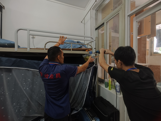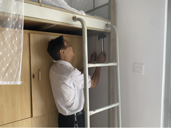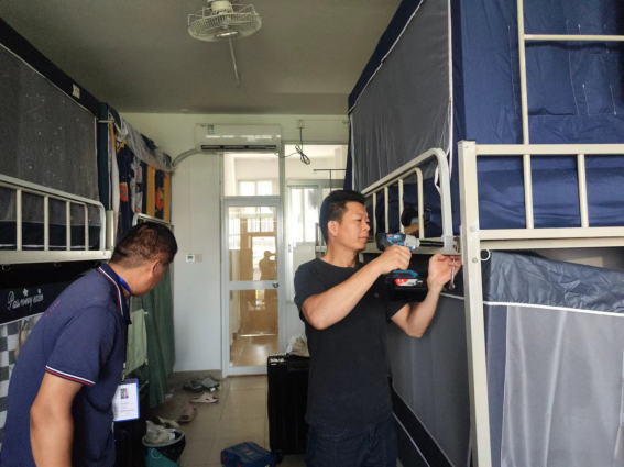 2. 为了进一步改善学生公寓宿舍生活设施,根据工作安排,在部分学生公寓开展架床护栏加高施工作业,在9月15-20日已完成东1A栋、东1B栋、东1栋、东2A栋、东2B栋、东7栋、东13栋共7栋学生公寓497间宿舍1988个床位的架床护栏加高工作。