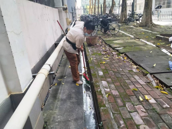 持续做好楼栋日常保洁和公寓园区绿植养护工作。进行日常保洁约19万平方米,清理明沟水沟长度约3270米;本周绿化园区重点进行西5园区绿化修剪以及南区拔草工作。