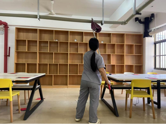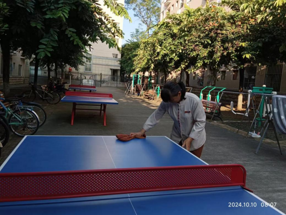 为营造学生公寓园区宜学宜居的环境,认真做好园区内消防设备设施、热水机组、洗涤设备等各种设备设施和33间自习室的保洁维护工作;做好学生公寓园区内472个生活设施(其中公共长椅102张,乒乓球桌152张,晾衣架134个、健身器材84个)的维护工作。