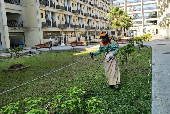 持续做好楼栋日常保洁和公寓园区绿植养护工作。进行日常保洁约19万平方米,清理明沟水沟长度约3270米;本周绿化园区重点进行各园区绿化消杀以及西7-15园区、东30栋绿化打理。
