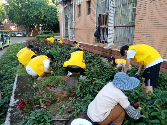 体验岗同学参与园区绿化护理工作