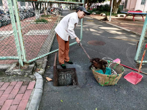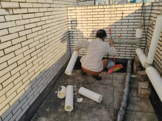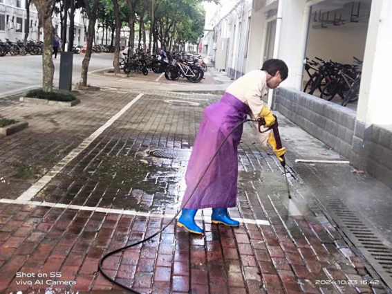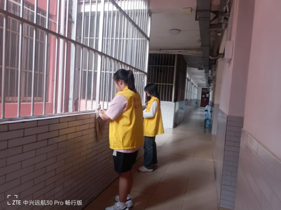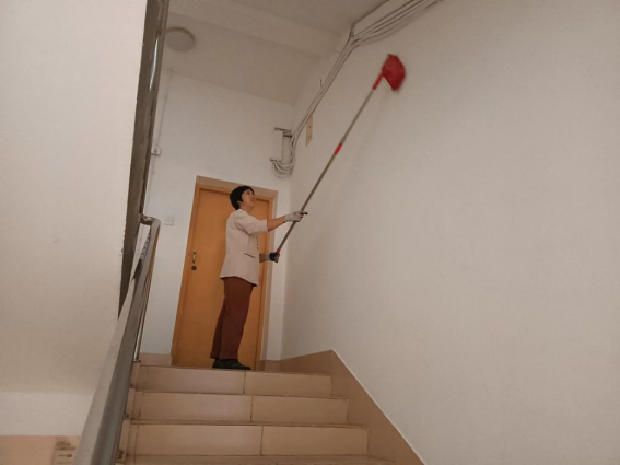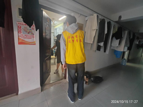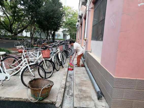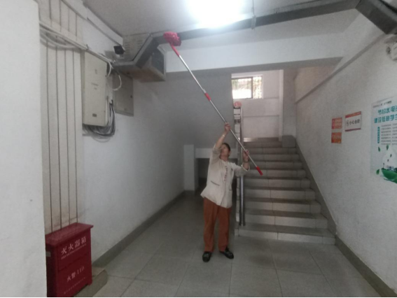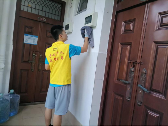 体验岗同学参与楼栋卫生保洁