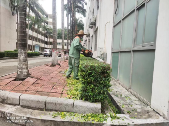 持续做好楼栋日常保洁和公寓园区绿植养护工作。进行日常保洁约19万平方米,清理明沟水沟长度约3270米;本周绿化园区重点进行各园区枯枝落叶修剪以及东集团大院、东8-11栋绿化带修剪工作。