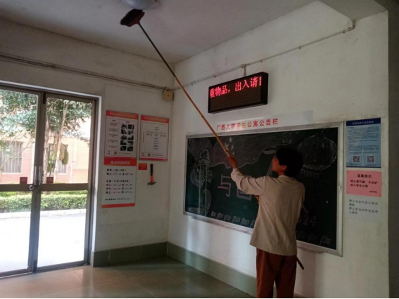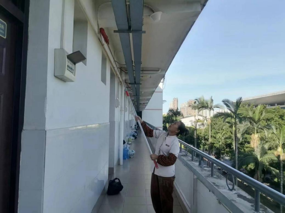 为营造学生公寓园区宜学宜居的环境,认真做好园区内消防设备设施、热水机组、洗涤设备等各种设备设施和33间自习室的保洁维护工作;做好学生公寓园区内472个生活设施(其中公共长椅102张,乒乓球桌152张,晾衣架134个、健身器材84个)的维护工作。