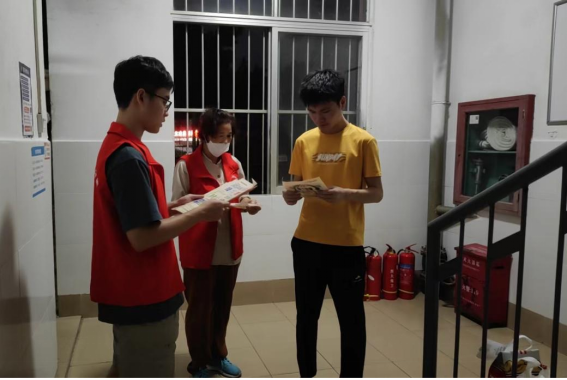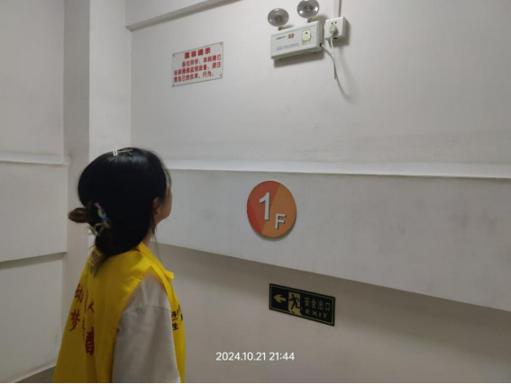 体验岗同学检查楼栋消防器材