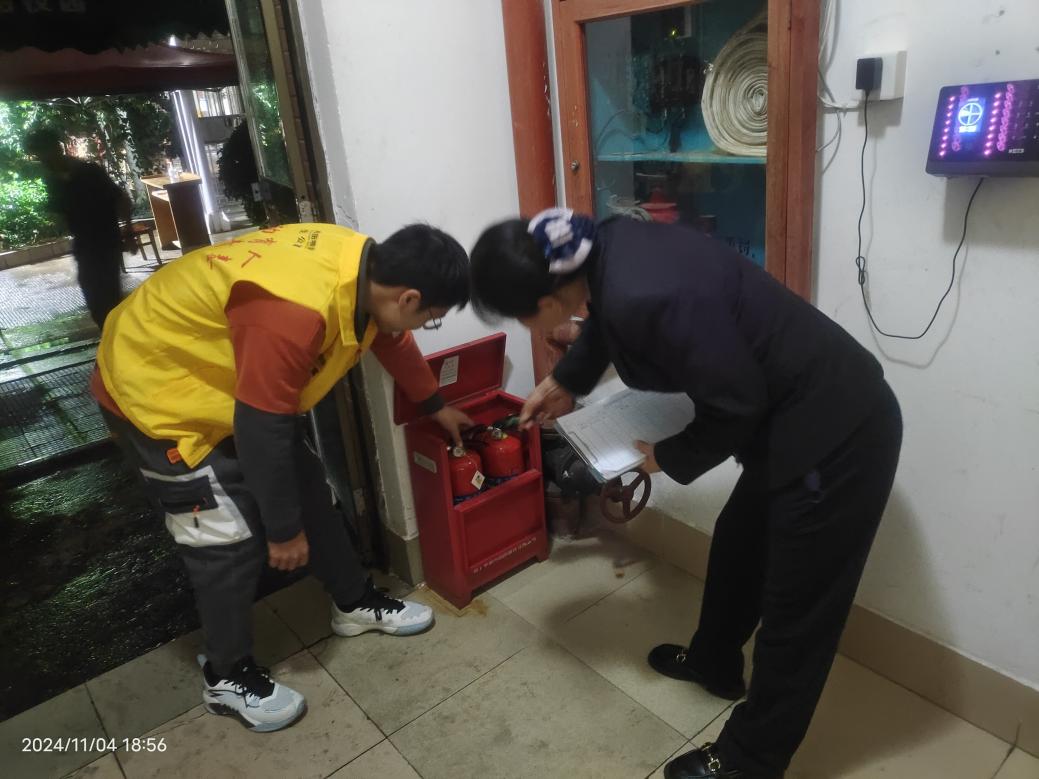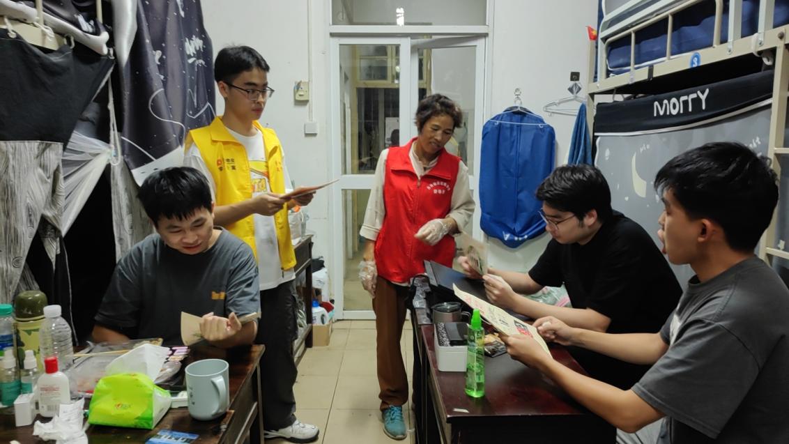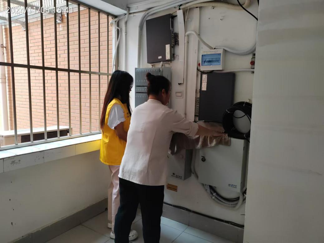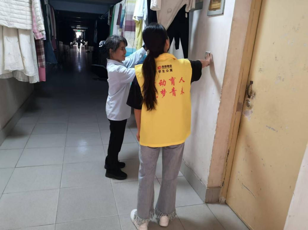 11月5日,学生公寓、水电、学院老师代表、学生代表与丹田物业一起联合开展月检工作