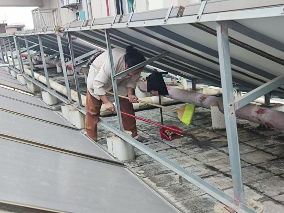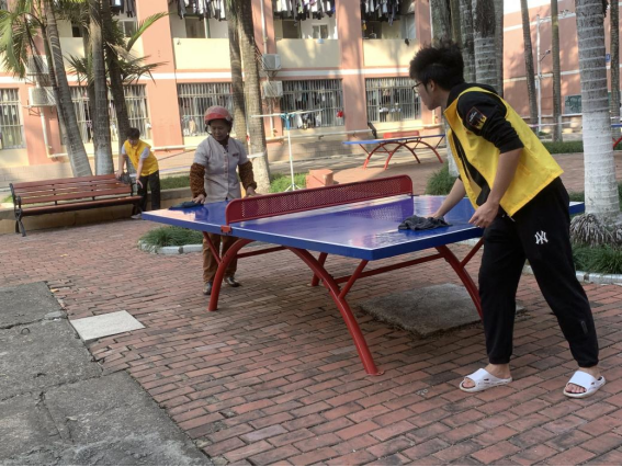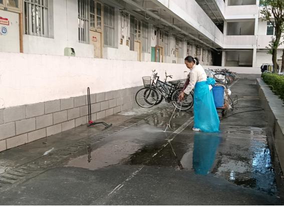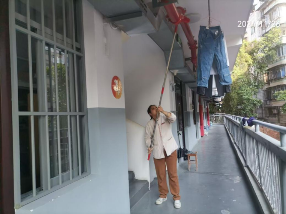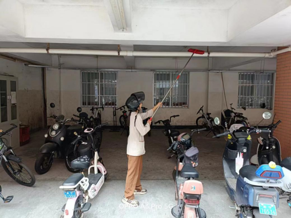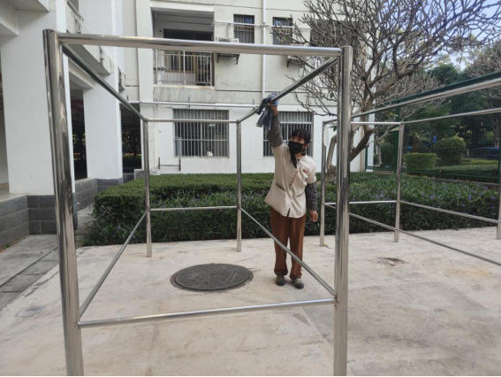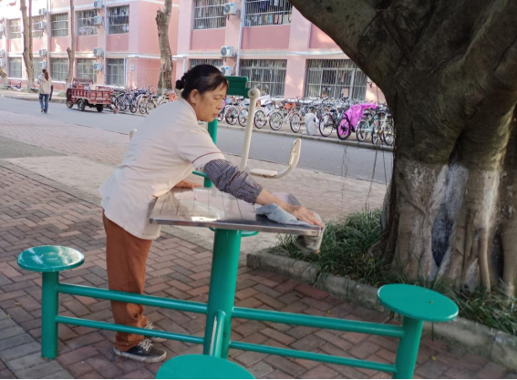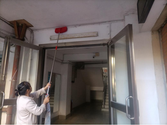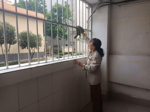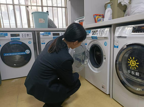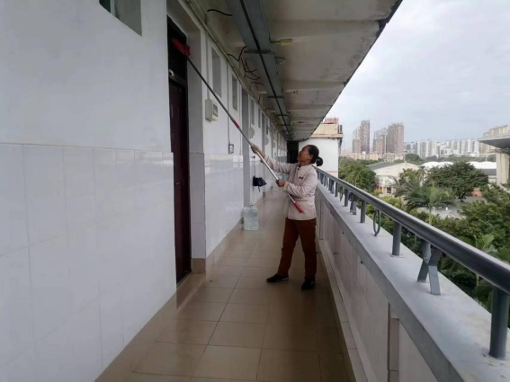 为营造学生公寓园区宜学宜居的环境,认真做好园区内消防设备设施、热水机组、洗涤设备等各种设备设施和40间自习室、15个多功能室的保洁维护工作;做好学生公寓园区内547个生活设施(其中公共长椅147张,乒乓球桌117张,晾衣架173个、健身器材110个)的维护工作。