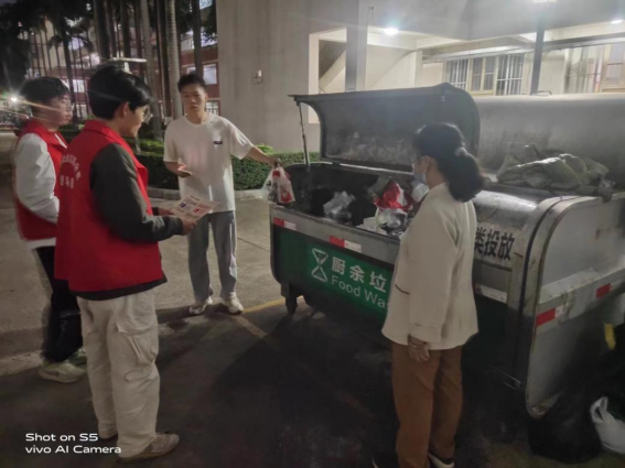 本周垃圾分类督导员共处理垃圾约44.821吨,其中厨余垃圾约21.07吨、其他垃圾约23.75吨、有害垃圾约 0.001吨;垃圾分类督导员走访学生宿舍并发放垃圾分类宣传单398多张,向577多位同学宣传垃圾分类知识。