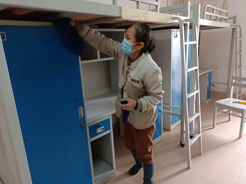 为营造学生公寓园区宜学宜居的环境,认真做好园区内消防设备设施、热水机组、洗涤设备等各种设备设施和40间自习室、15个多功能室的保洁维护工作;做好学生公寓园区内533个生活设施(其中公共长椅147张,乒乓球桌117张,晾衣架173个、健身器材110个)的维护工作。