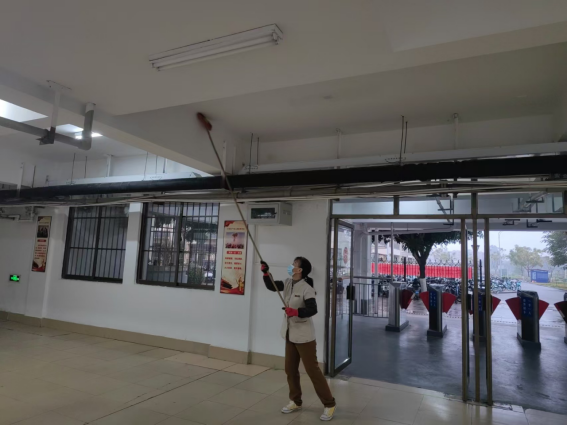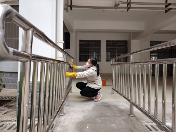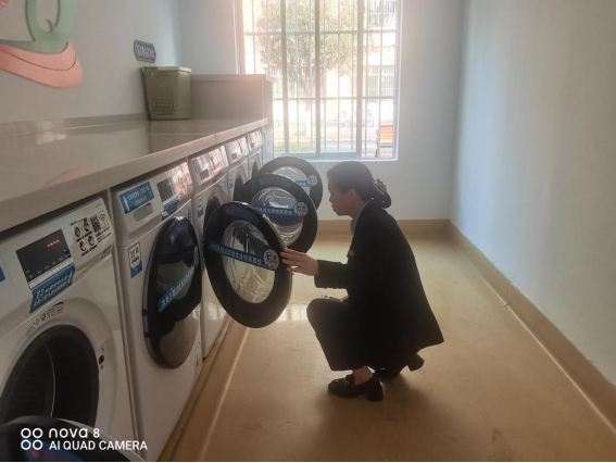 为营造学生公寓园区宜学宜居的环境,认真做好园区内消防设备设施、热水机组、洗涤设备等各种设备设施和40间自习室、15个多功能室的保洁维护工作;做好学生公寓园区内547个生活设施(其中公共长椅147张,乒乓球桌117张,晾衣架173个、健身器材110个)的维护工作。